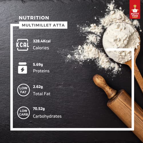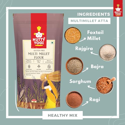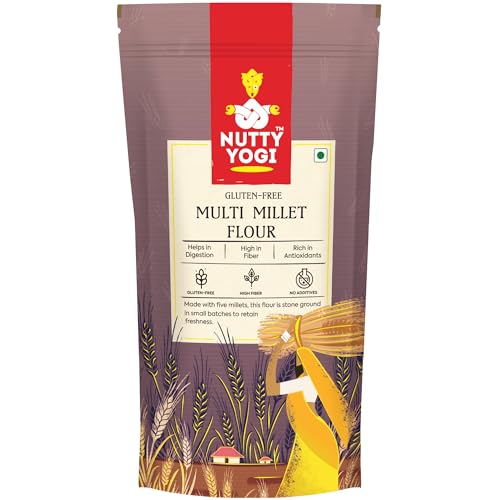 HomeGroceryCookingOrganic Flours, Rice & PulsesNutty Yogi 5 Multi Millet Flour l Gluten Free l Grain-Free l Amaranth Bajra Foxtail Millet Sorghum Ragi l Diet Food For Weight Loss l Mix in Atta to make it Multigrain atta 400gm
