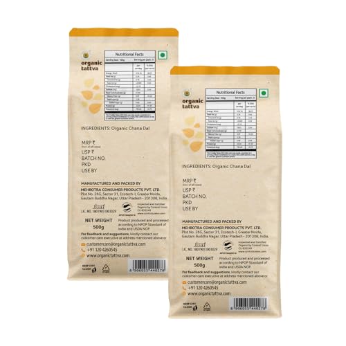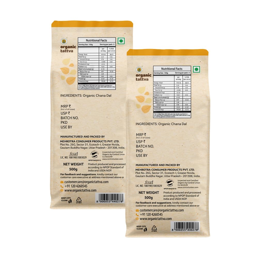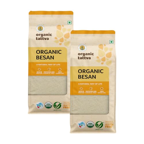 Organic Tattva, Organic Besan 500g Bengal gram Flour | 100% Chana Dal | Fine Besan | Rich in Protein | Naturally Gluten Free | Pesticide and Chemical Free | Pack of 2