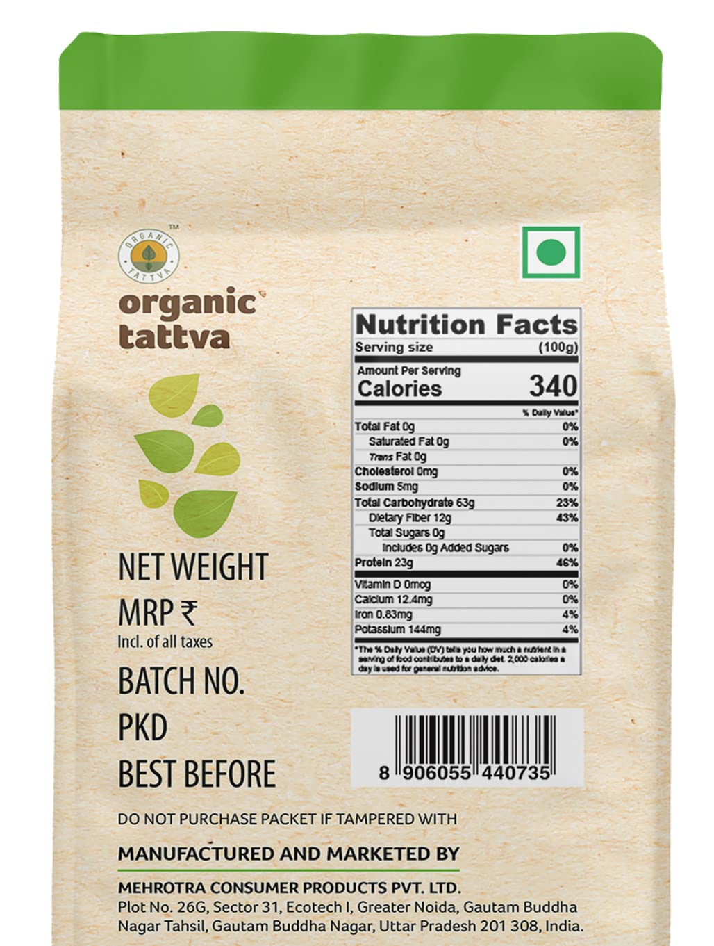 Organic Tattva's Organic Green Moong Dal Sabut / Whole is organic certified Gluten Free and free from any preservatives or pesticides so it's full of daily essential nutrients iron calcium and protein. Along with these nutrients a bowl of Organic Moong Dal Whole also contains dietary fibres sodium and all the other nutrients that are required for your body. A 100g serving of Organic Moong Dal Whole contains 0g trans-fat and 0g sugar. The calorie count per serving of Organic Moong Dal Whole is 349. If leading a healthy life is your mantra then switch to Organic Moong Dal Whole by Organic Tattva today! For most Indians comfort food is always linked to easy-to-cook homemade meals and what can be the most convenient and quick to prepare dal. A staple in the Indian diet Green Moong dal is a good source of protein. Essential in every household Organic Tattva Green Moong dal is organic and unpolished as it does not undergo any artificial polishing with water oil or leather thereby retaining its goodness and wholesomeness. The 5-step process ensures that Organic tattva Green Moong dal grains are uniform and of premium quality giving you an all-natural and authentic taste. So whenever you are in the mood to cook something easy delicious healthy dive into the scrumptious taste of organic tattva pulses and enjoy a lovely meal! Explore Organic Tattva Organic Pulses range - Toor dal Chana dal Moong dal Green Moong Masoor dal Masoor Small dal Masoor Whole dal Kali Masoor dal Urad dal Urad Whole dal Urad Kali Kabuli Chana Kala Chana Matki (Moth bean) and Rajma. Storage: Store in a cool and dry place. Transfer contents in an airtight container after opening. Organic Tattva moong whole is greener medium sized and had a great traditional taste since organically grown using traditional seeds and processed traditionally. It is machine cleaned and handpicked before packing to ensure its purity and hygiene healthier tastier.