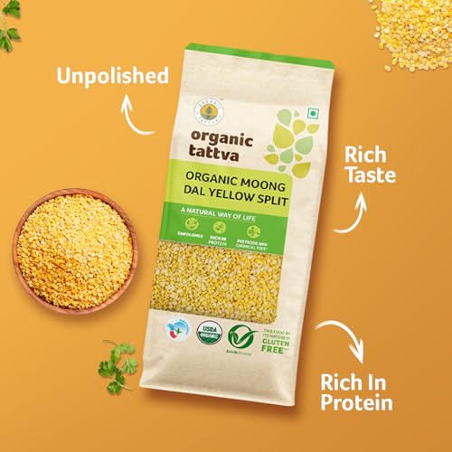 Organic Tattva Organic yellow moong dal is a product that brings you these wonderful pulses with its trademark quality. The protein and carbohydrate rich dal is an ingredient in a large number of cuisines across Asia. Its golden colour is a common sight in many a culture and is salted to make a wonderful snack. Organic Tattva's organic moong dal is a legume that is totally organic unpolished and is painstakingly packed to keep it fresh and free from adulterants. Coming with polythene packs the dal is kept fresh right from the beginning till it reaches your hands. All products at Organic Tattva are 100 percent organic certified and free from artificial colours and preservatives. For most Indians comfort food is always linked to easy-to-cook homemade meals and what can be the most convenient and quick to prepare dal. A staple in the Indian diet Moong dal is a good source of protein. Essential in every household Organic Tattva Yellow Moong dal is unpolished as it does not undergo any artificial polishing with water oil or leather thereby retaining its goodness and wholesomeness. The 5-step process ensures that Organic Tattva Moong dal grains are uniform and of premium quality giving you an all-natural authentic taste. So whenever you are in the mood to cook something easy and delicious dive into the scrumptious taste of Organic Tattva pulses and enjoy a lovely meal! Explore Organic Tattva's Organic Pulses range - Toor dal Chana dal Moong dal Moong dal Chilka Green Moong Masoor dal Masoor Whole dal Urad dal Urad Whole dal Urad Kali Kabuli Chana Kala Chana Matki (Moth bean) and Rajma. Storage: Store in a cool and dry place. Transfer contents in an airtight container after opening.