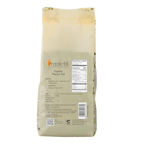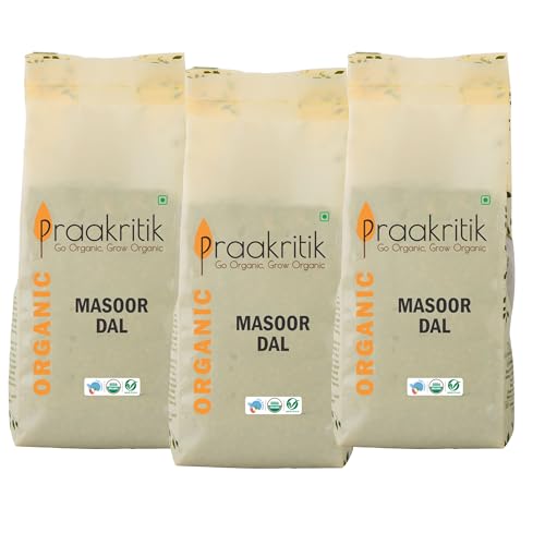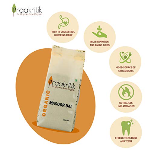 Praakritik Organic Split Masoor Dal | 100% Organic | 100% Natural | daal grocery | Organic Healthy Pulses | No Added Preservatives and Colors | Pack of 3 | 500 Grams Each