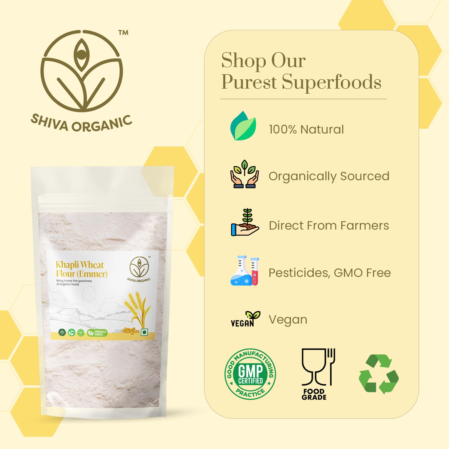 Shiva Organic Khapli Wheat Atta (4.5 kg) | Emmer Wheat Flour - High Fibre Low Gluten & Diabetic Friendly | Easy Digestion | Stoneground Emmer Atta