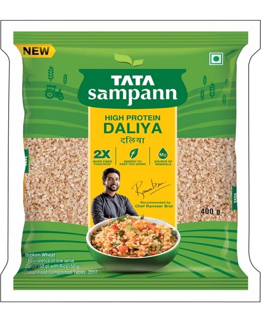 Tata Sampann Wheat Dalia is lightly milled version of organic wheat grains ensuring brightness and nutrition. It has flexible texture and is small on gluten. It is healthy flour as it uses up the whole grain. The whole wheat is used to make baked dishes with a weighty and thick texture. Whole wheat is enhanced than refined wheat for fitness. It acts as a successful laxative. It is a rich resource of magnesium. It significantly lowers the risk for Type 2 Diabetes. It is used to prepare breads and cereals. It helps in maintenance the gastrointestinal purpose normal.
