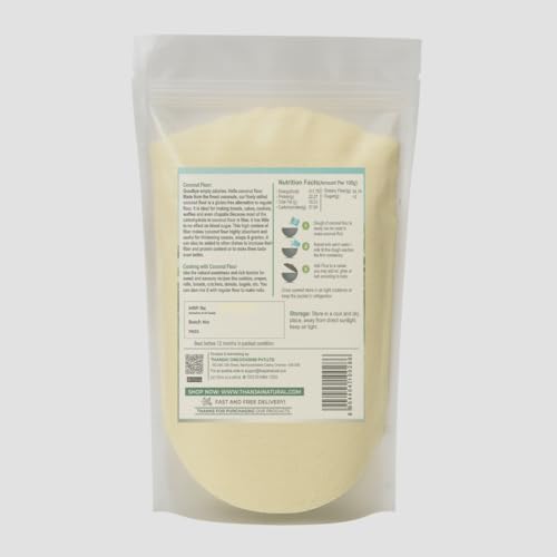 Thanjai Natural Coconut Flour is made with high-quality finest coconuts. Coconut flour is a much better alternative to all-purpose flour or semolina. It delivers great taste and provides you with many health benefits as well. With this powder you are able to cook wholesome and delicious items very easily. It is a perfect ingredient for making baked items. With this product you are able to make your food more nutritious and delicious as well.