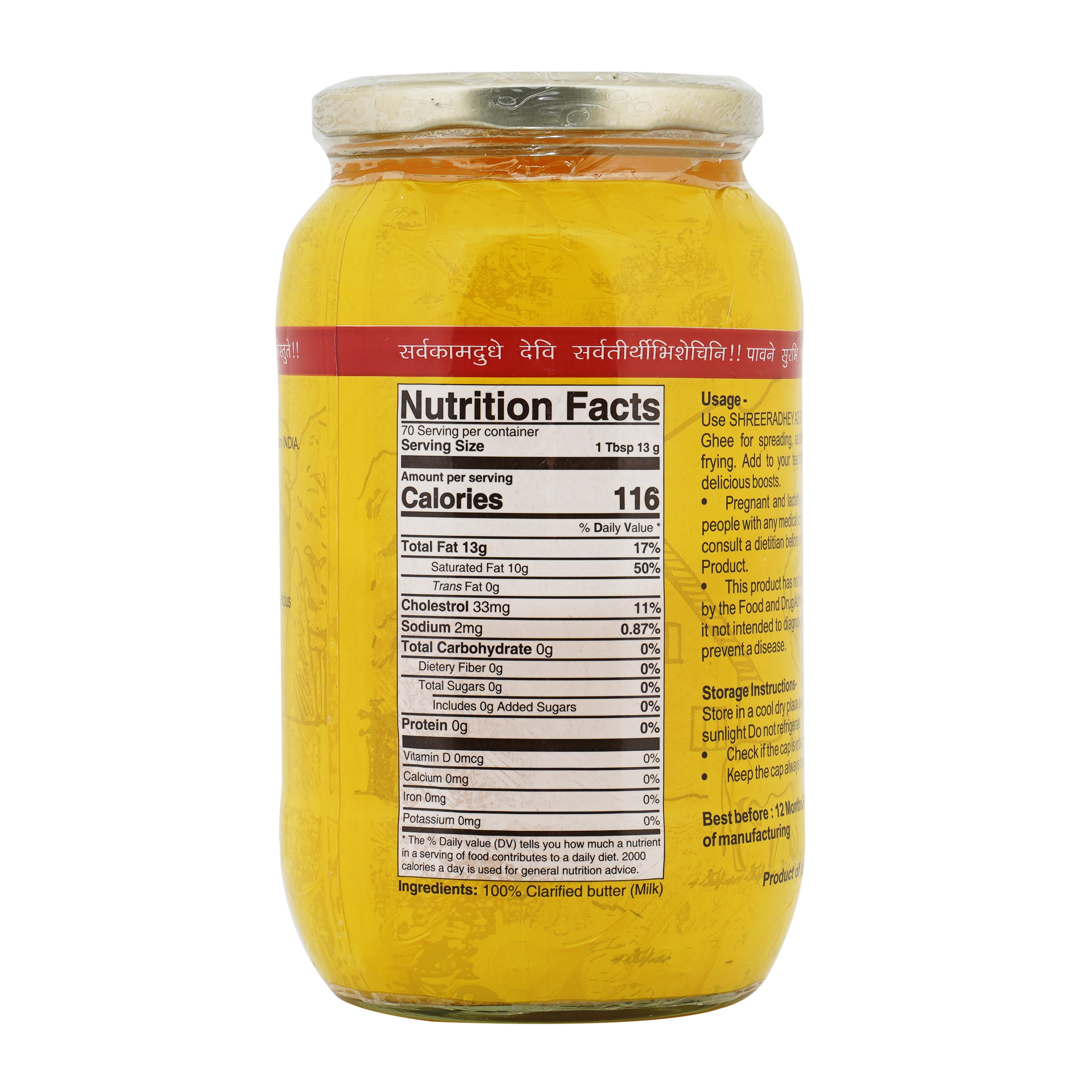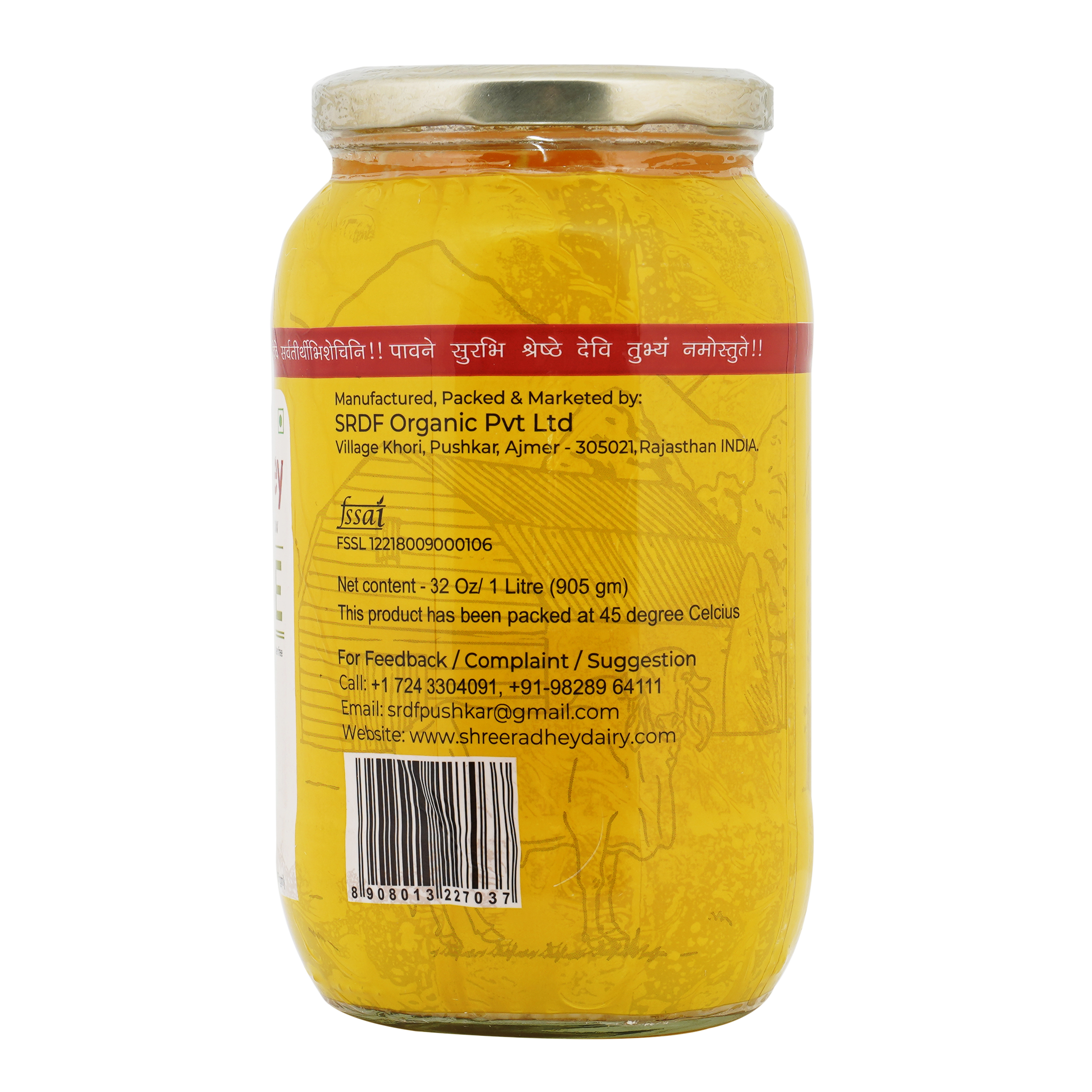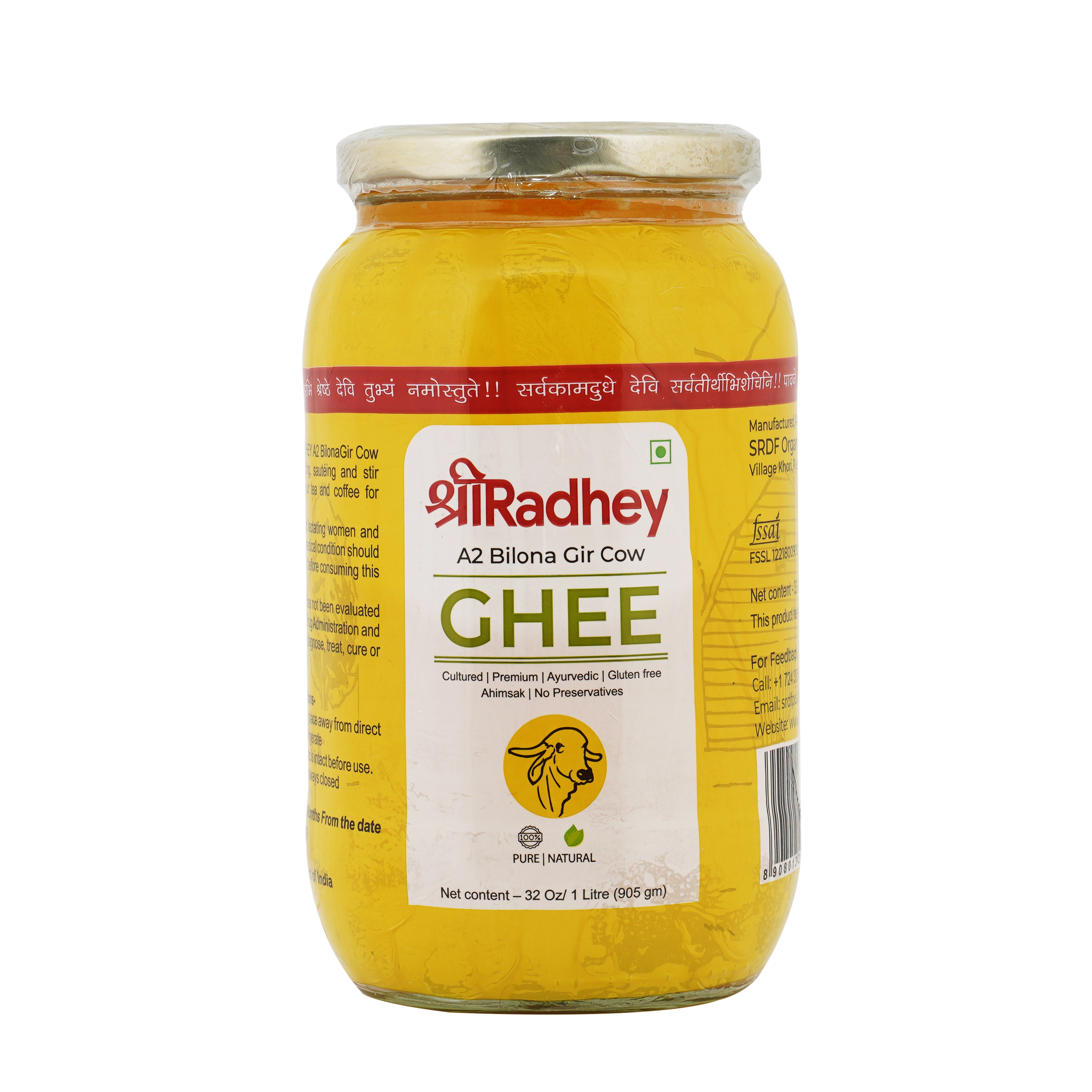 Since 2015 SHREE RADHEY A2 Bilona Gir Cow Ghee is one of the most trusted product because of it's taste attributes. Best source of nutrition for you and your family as it tastes what real ghee should taste like. Tip: ghee must always be consumed with dishes like like daal kadhi milk . Cooking food in ghee makes it tastier as well as healthy our process is completely based on ancient Indian traditions. We use hand-churned techniques to get the purest and finest ghee; in our procedure we use 30 litres a2 milk into curd which is coalesced and hand-churned to finally produce 1 litre of ghee. Step 1 : in a clay pot unprocessed fresh and raw milk is boiled and converted into curd step 2 : hand-churned process is used with a wooden churner also known as bilona in Indian language step 3 : we obtain the butter in this process then separate it. Step 4 : separated butter (makkhan) is then boiled in an iron vessel on SIM fire.