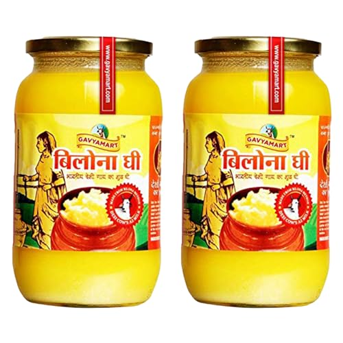 Gavyamart Bilona ghee 100% Pure Desi Kankrej Cow Ghee-Made Using Traditional Bilona Method 1 L- Glass jar pack (2*1 L)