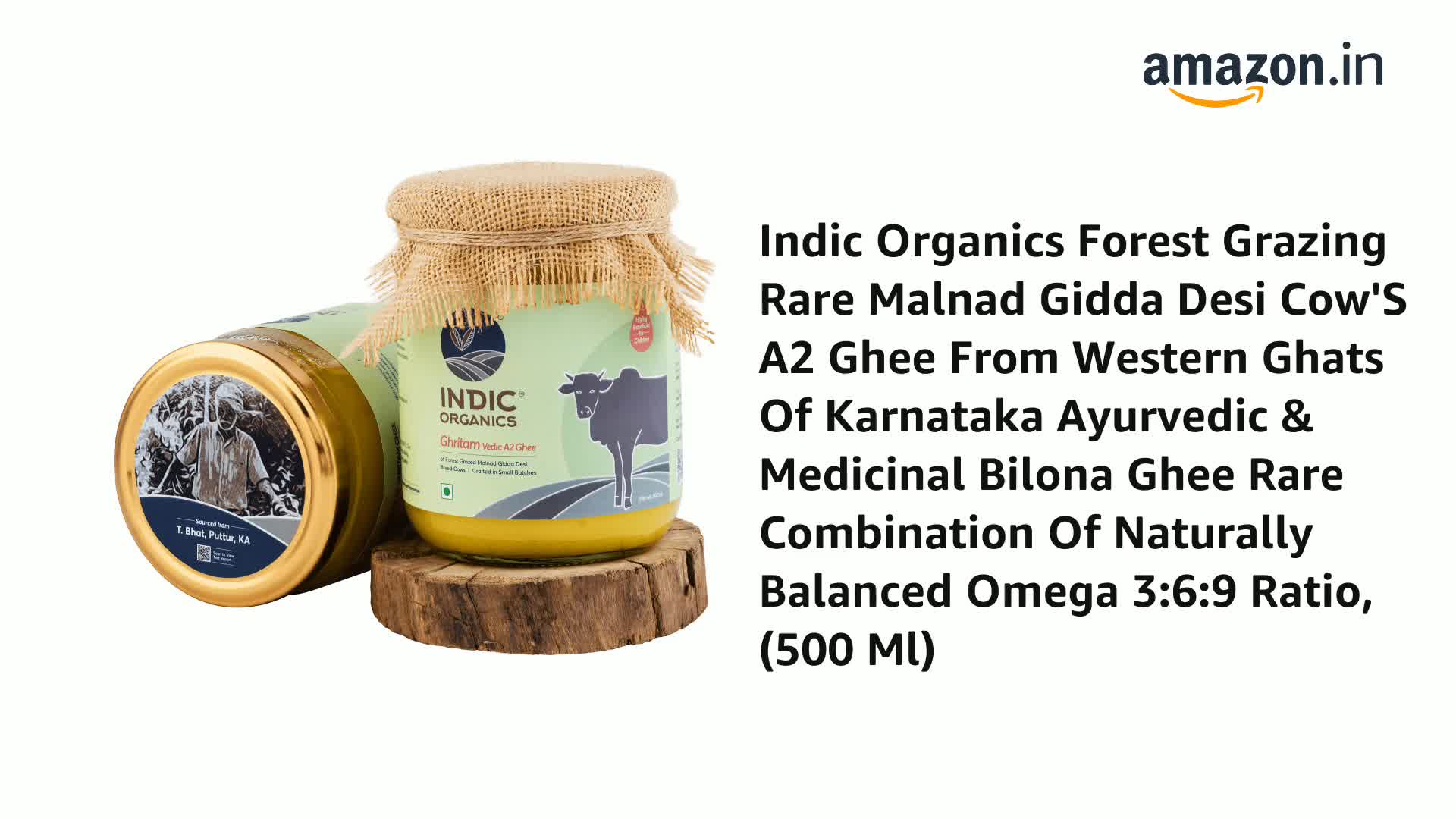 Indic Organics Forest Grazing Rare Malnad Gidda Desi Cow'S A2 Ghee From Western Ghats Of Karnataka Ayurvedic & Medicinal Bilona Ghee Rare Combination Of Naturally Balanced Omega 3:6:9 Ratio (500 Ml)