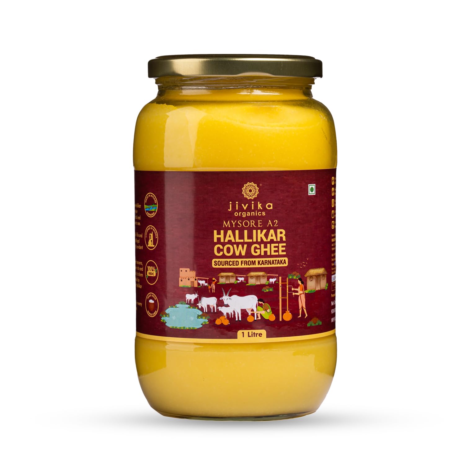 AYURVEDIC : We at Jivika Naturals follow ancient Ayurvedic procedures when handcrafting each batch of Hallikar Cow Ghee. Our butter is churned from Whole Curds rather than malai ensuring that our ghee is free from trans fats and LDL cholesterol.