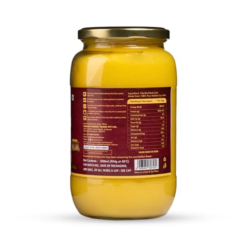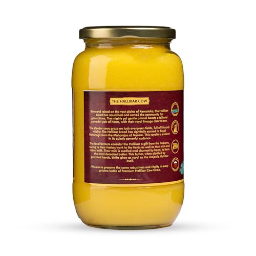 NUTRIENTS : Hallikar Cow Ghee is rich in omega-3 and omega-9 fatty acids along with an abundance of antioxidants. It also has a diverse vitamin content of vitamins A C D E and K.