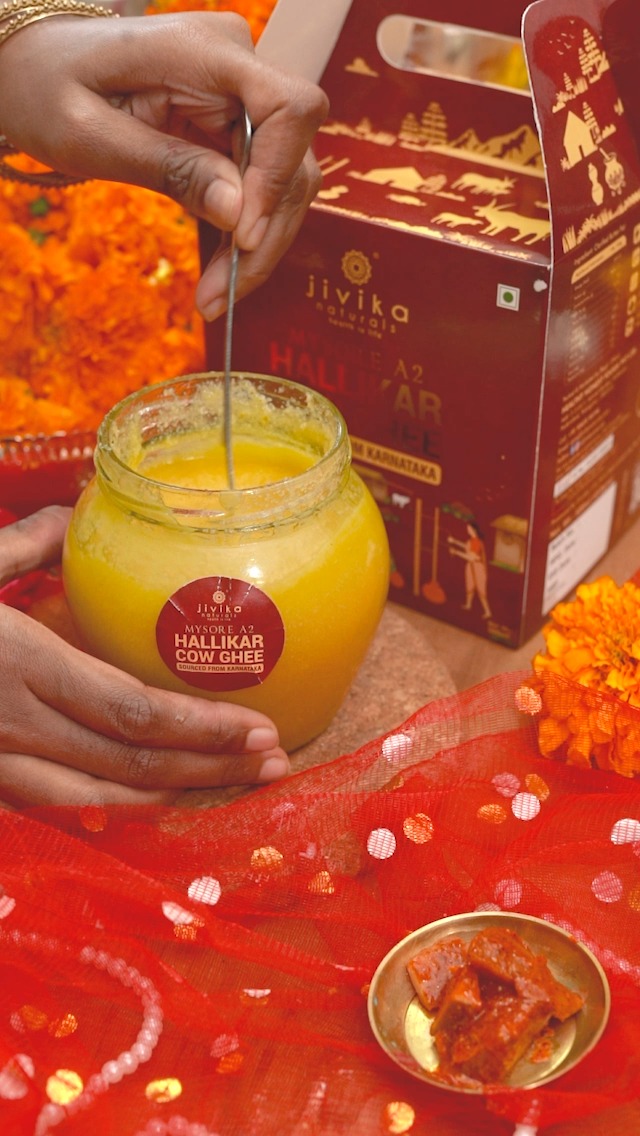HALLIKAR COWS : Jivika Naturals Mysore A2 Hallikar Cow Ghee is made by natuve gwala communities in Kutch Gujarat. The Royal Hallikar Cows receive the utmost care and attention from the gwalas and the same goes for each drop of our ghee.