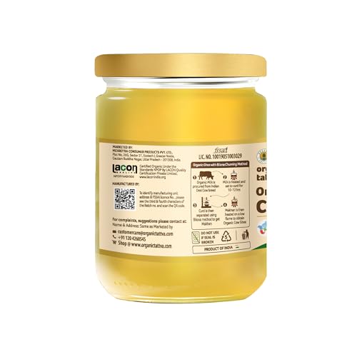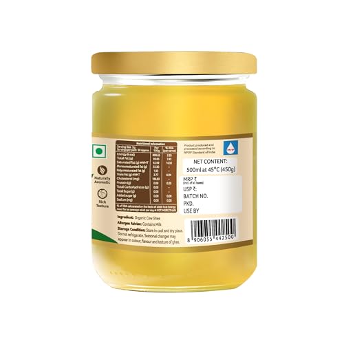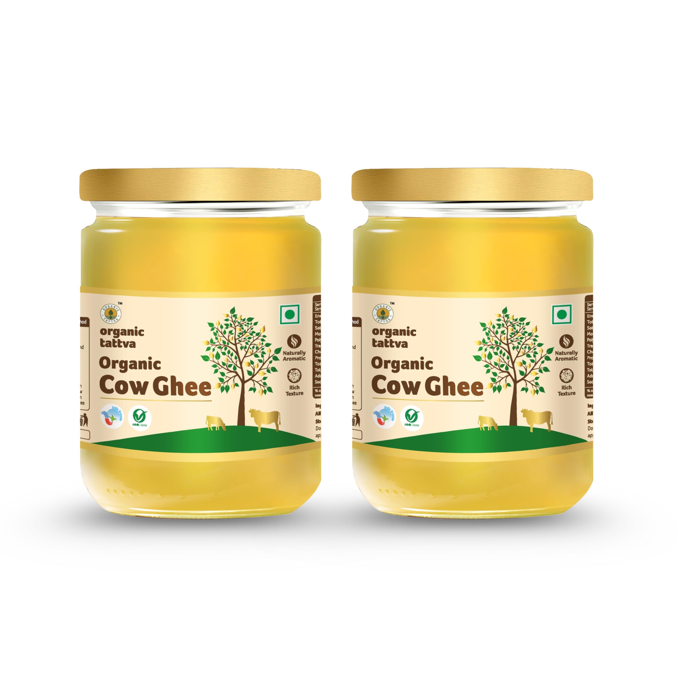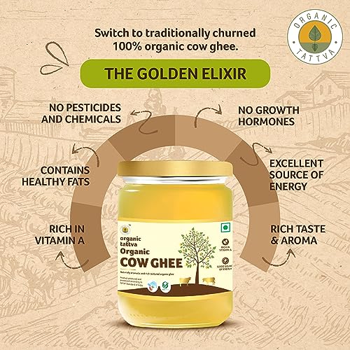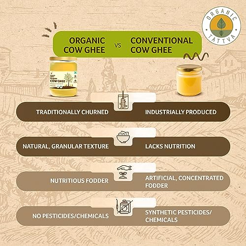 Organic Tattva Organic Cow Ghee 500 ml | Pure Organic Ghee | Traditionally Churned | Granular/Danedar Ghee | Rich in Aroma | Excellent Source of Energy | Pesticide and Chemical Free