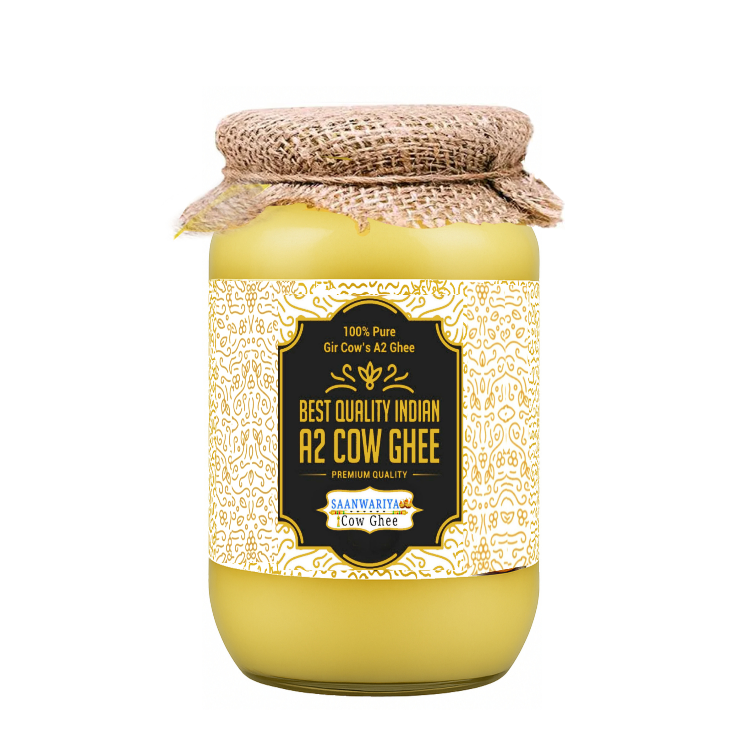 Saanwariyas A2 gir cow ghee is 100% Pure Desi Cow Ghee made in a clay pot on a traditional stove by completely Ayurvedic Bilona method milk Sourced exclusively from grass-fed Gir cows, known for their A2 protein-rich milk. We use mango wood and cow dung cakes in the stove so that the temperature of the flame is not too high and the nutrients inside the milk remain intactSaanwariyas Regular Cow Ghee is a traditionally crafted product made from the milk of indigenous Gir cows. It is prepared using the ancient Ayurvedic Bilona method, ensuring both purity and nutritional richness.