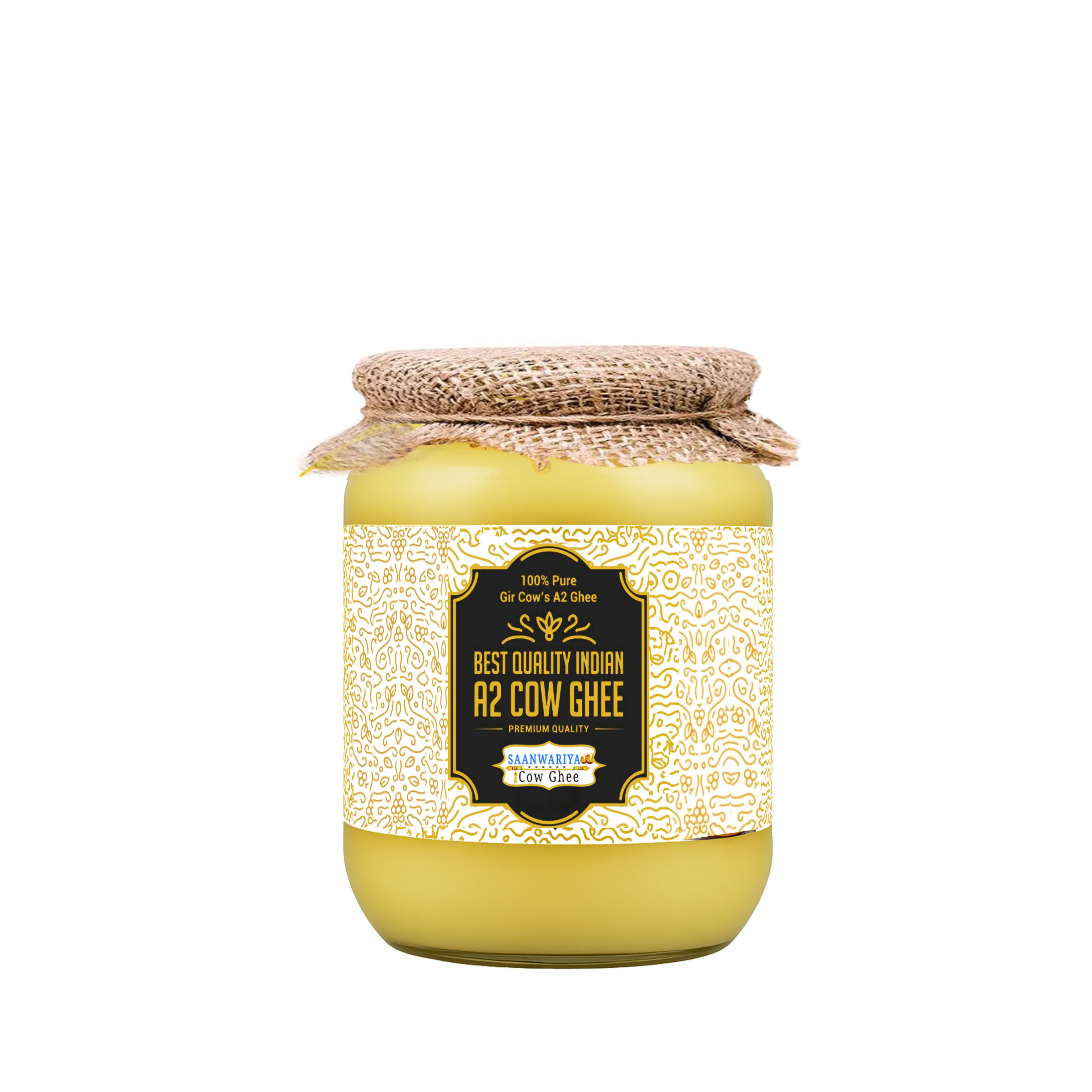 Saanwariyas A2 gir cow ghee is 100% Pure Desi Cow Ghee made in a clay pot on a traditional stove by completely Ayurvedic Bilona method milk Sourced exclusively from grass-fed Gir cows, known for their A2 protein-rich milk. We use mango wood and cow dung cakes in the stove so that the temperature of the flame is not too high and the nutrients inside the milk remain intactSaanwariyas Regular Cow Ghee is a traditionally crafted product made from the milk of indigenous Gir cows. It is prepared using the ancient Ayurvedic Bilona method, ensuring both purity and nutritional richness."