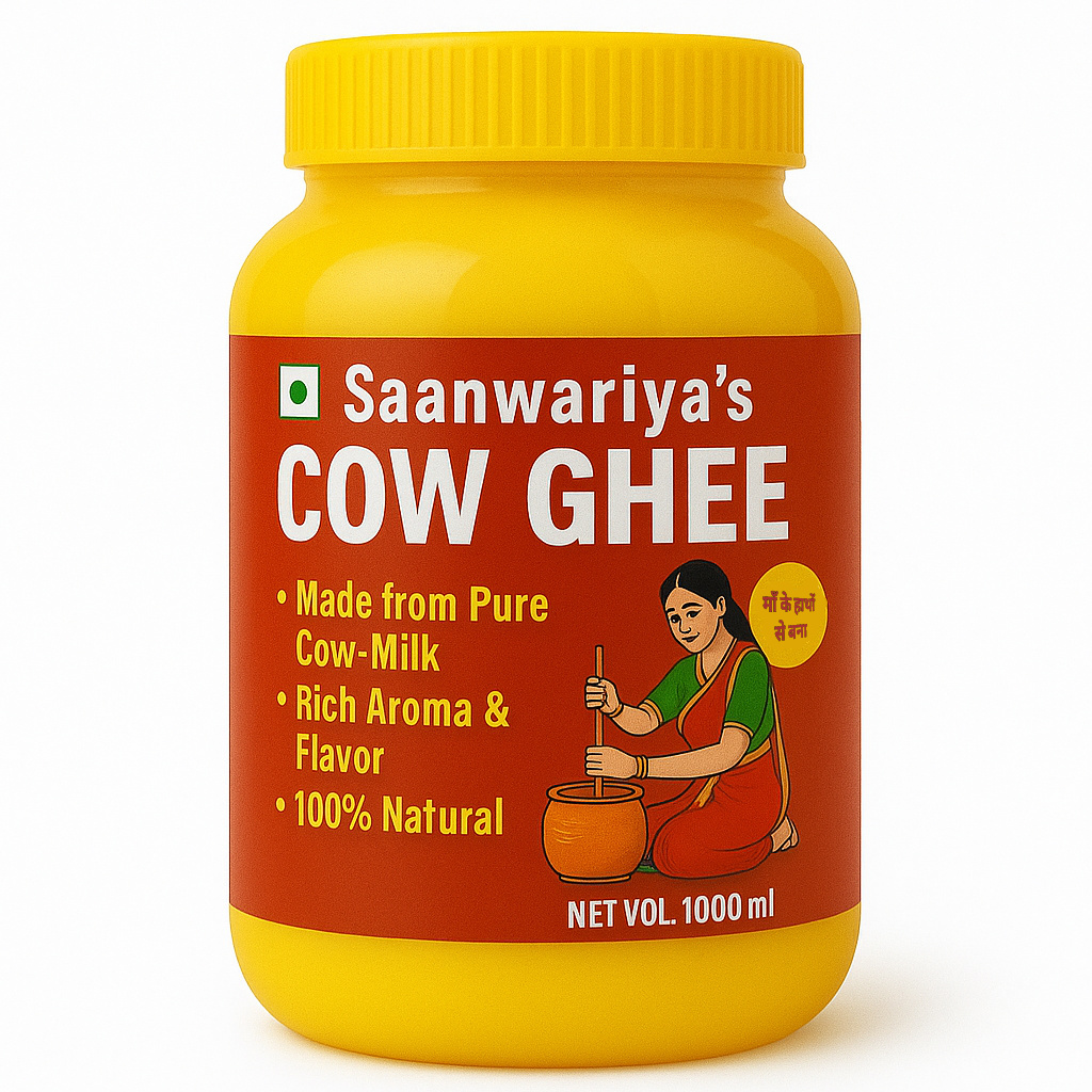 Saanwariyas Regular Cow ghee is made from the milk of cows, we take cream to make this butter that has been heated to remove water content and other milk solids, leaving behind a pure, golden-yellow, semi-liquid fat. It's known for its rich flavor, aroma, and high smoke point, making it a versatile ingredient in both cooking and traditional Ayurvedic practices