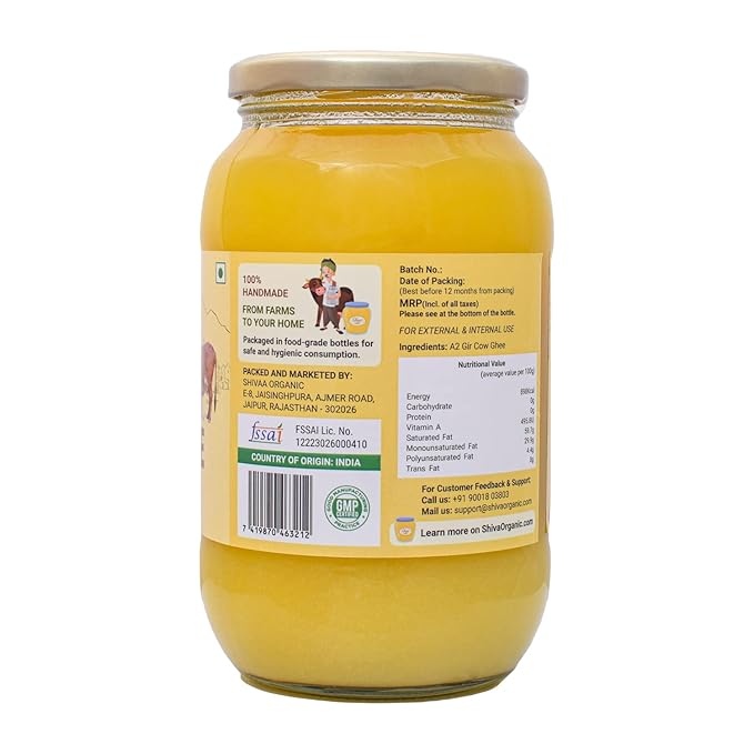 Premium Quality: Our Shiva Organic Desi Gir Cow A2 Ghee is crafted with care using the traditional Bilona method for the highest purity.