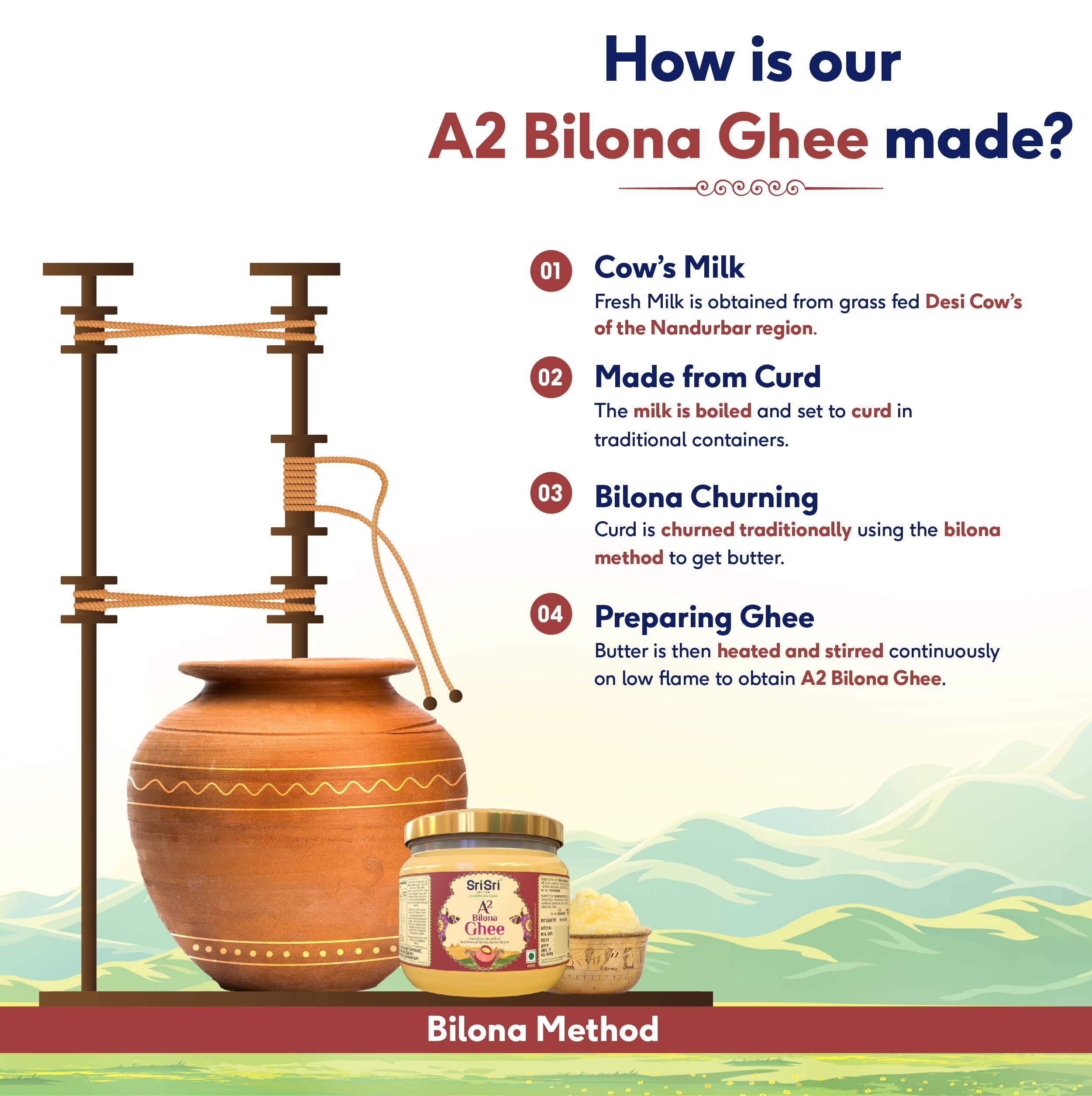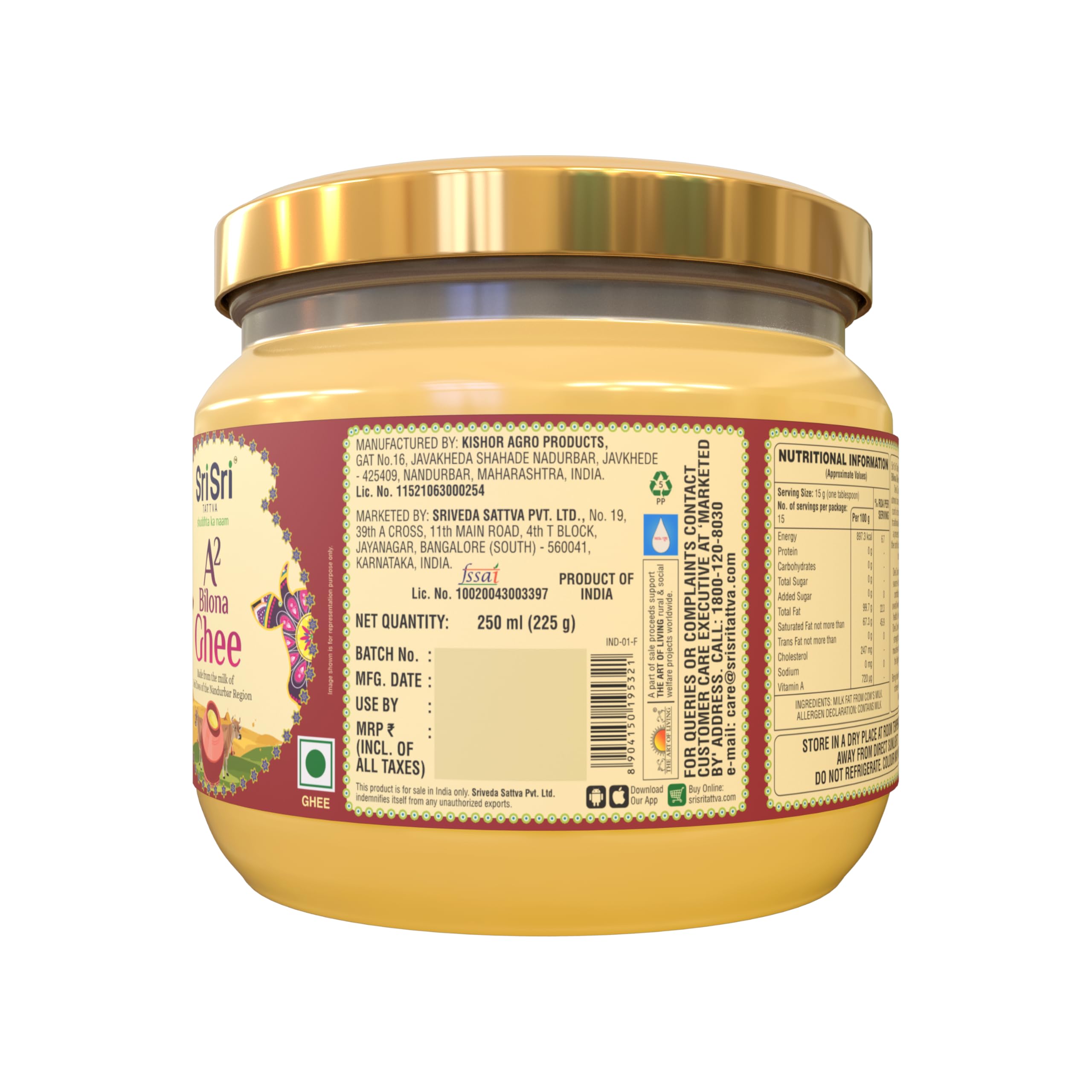 Discover the rich and nutty flavor of Bilona A2 Ghee. Made from the milk of grass-fed Bilona cows it is packed with essential vitamins and fatty acids. Sourced from organic dairy farms this 250 ml jar is perfect for cooking baking and adding a burst of flavor to your meals.