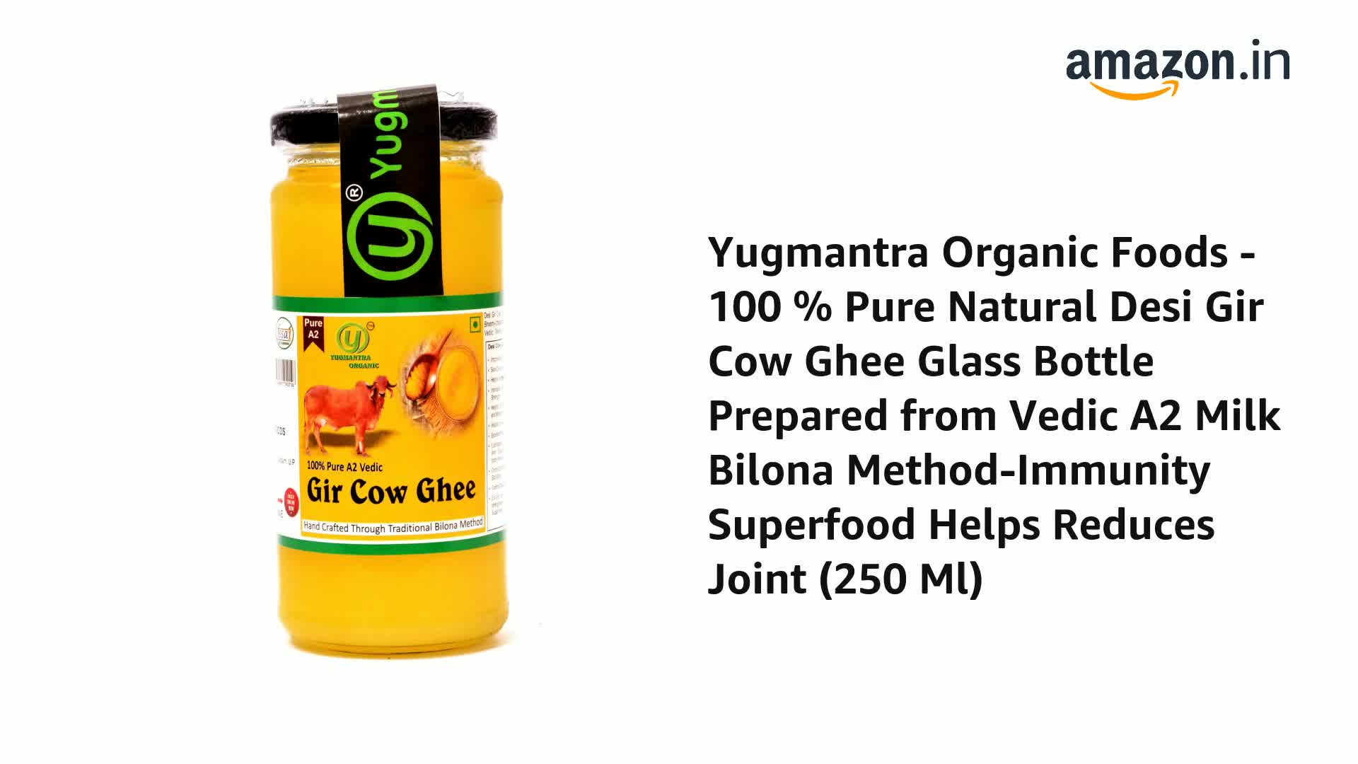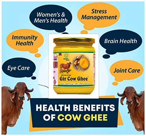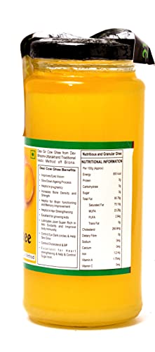 Yugmantra Organic Foods Pure Natural A2 Milk Shudh Desi Gir Cow's Ghee from Alwar Traditional Vedic Method of Bilona to Produce Desi Ghee: Milk-Curd-Churn Curd in Clay Pots-Extract Butter-Heat the Butter-Granulated Yellow Cow Ghee is produced We believe it to be excellent for growing kids Power house of Vitamins that promotes good health and is super rich in anti-oxidants to improve body immunity.
