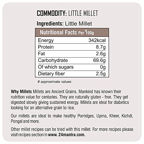 24 Mantra Organic Little Millet - 500Gms | Pack Of 5 | 100% Organic | Chemical Free & Pesticides Free | Gluten-Free