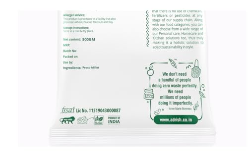 Adrish Zerowaste Organic Proso Millet (500gm) - Organic | Unpolished Millets | Gluten Free Millet | High Fiber Millet | Protein Rich & More Fiber than Rice