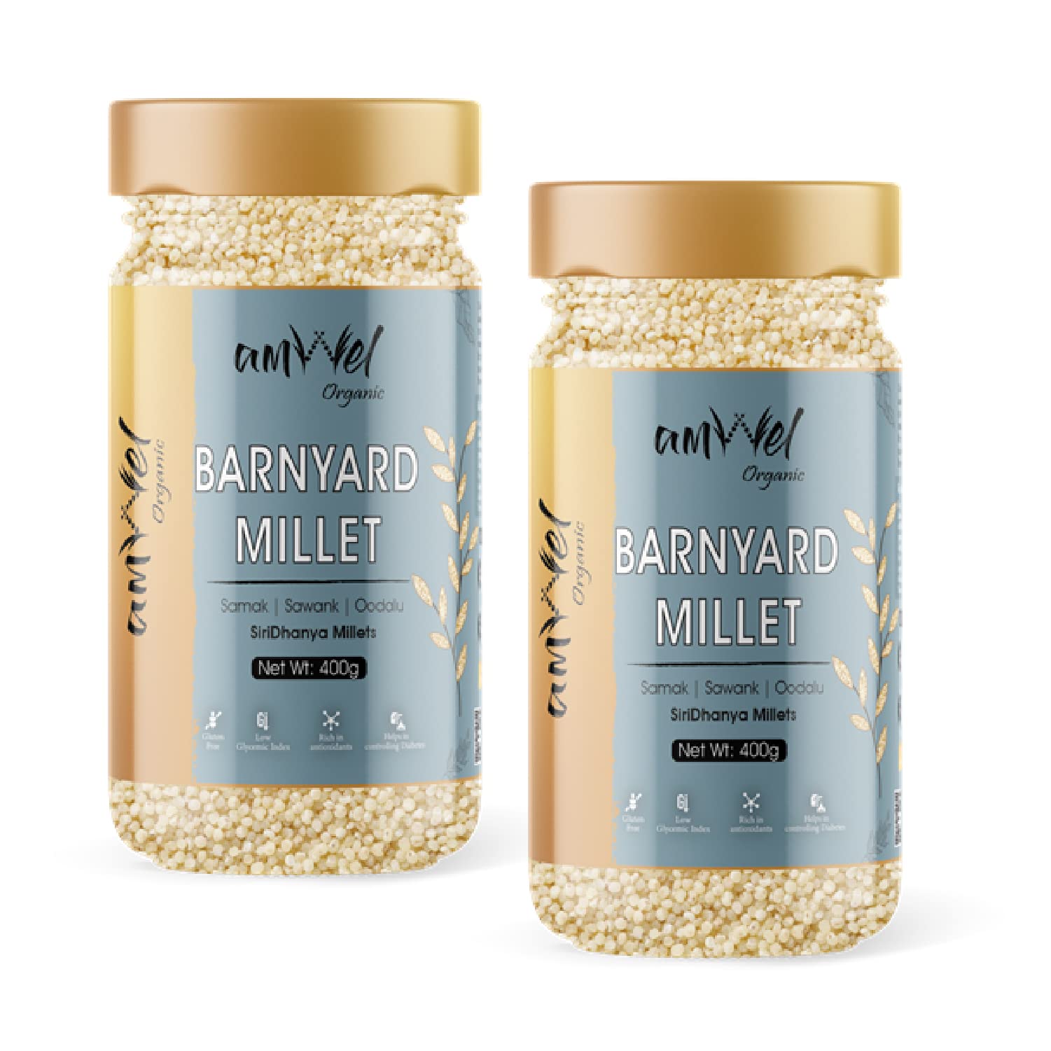 Amwel Organic Barnyard Millet | 400 grams x 3 pc | Siri Dhanya Millets | Sama Samak Sawang | Positive Millets | Raw Unpolished Grain Millet Rice | Gluten Free Fiber Rich Low GI Diabetic Friendly