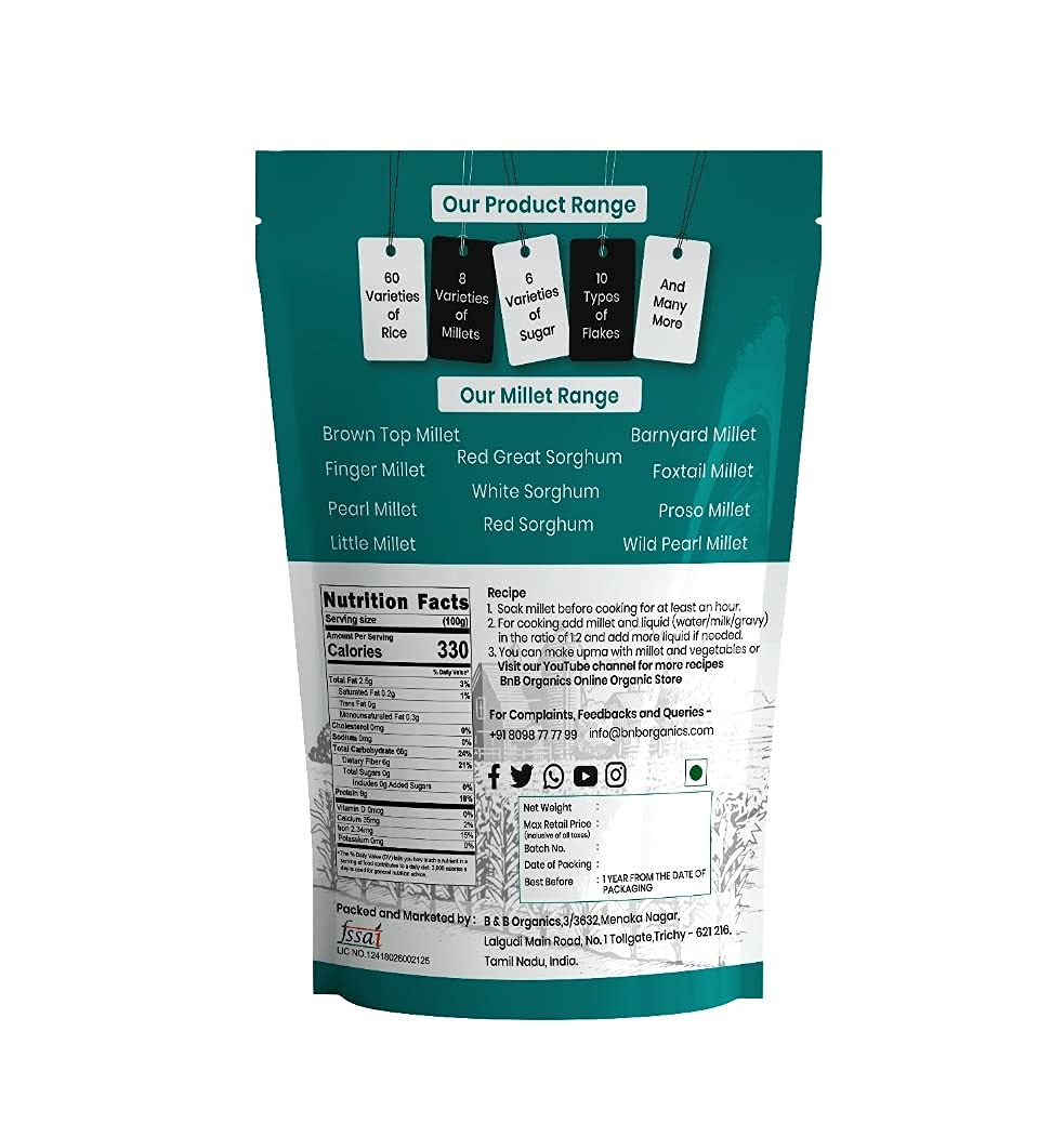 B&B Organics Kodo Millet (500 grams) Pack of 3/Varagu Arisi/Traditional Millet/Sridhnyam