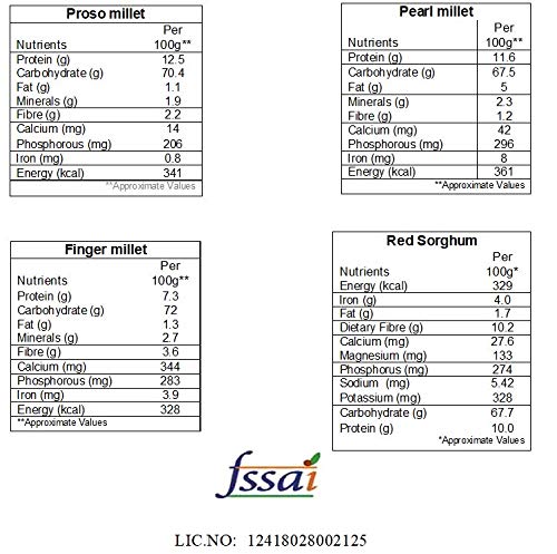 • Package Contents: Millets Pack of 4 Proso Pearl Ragi Red Jowar
