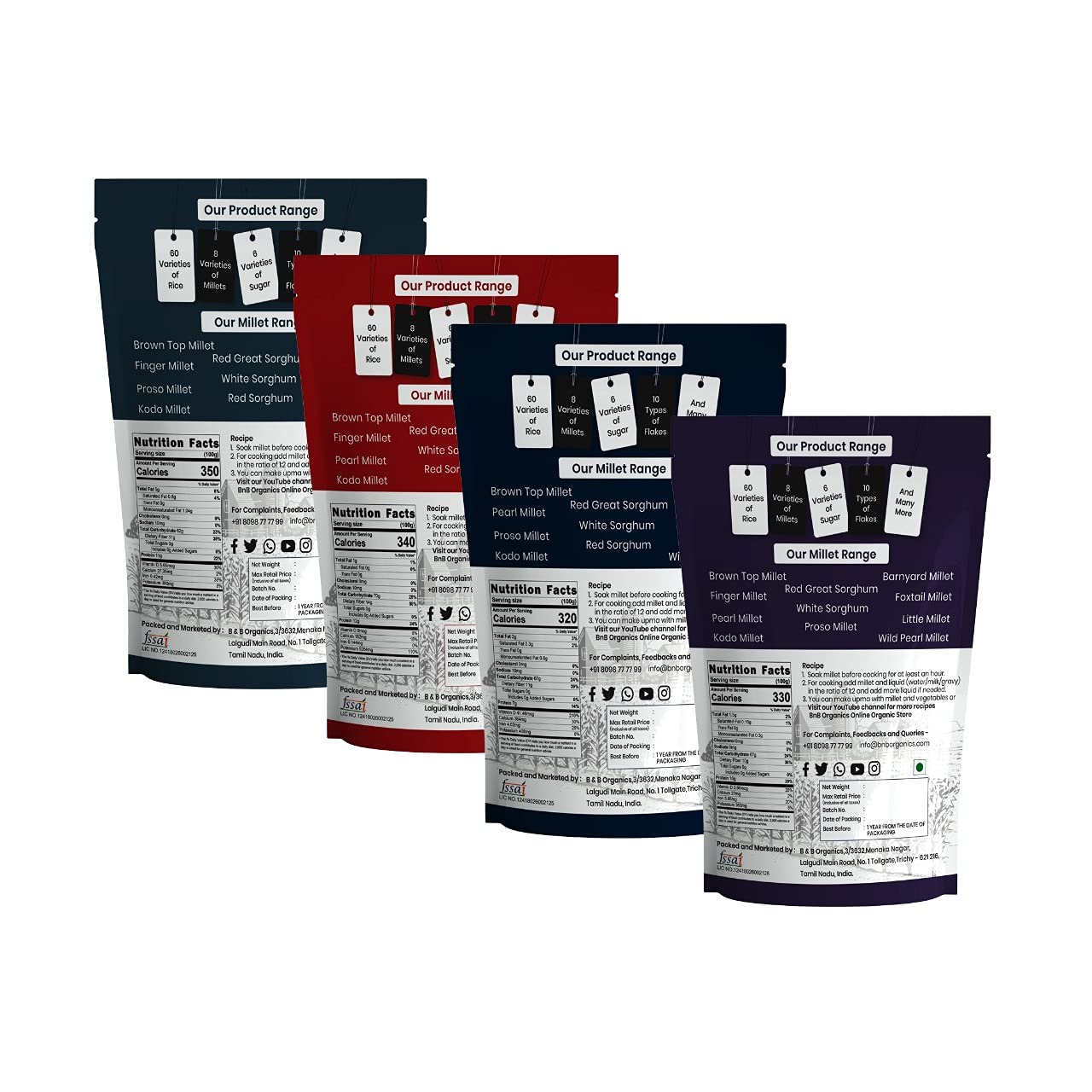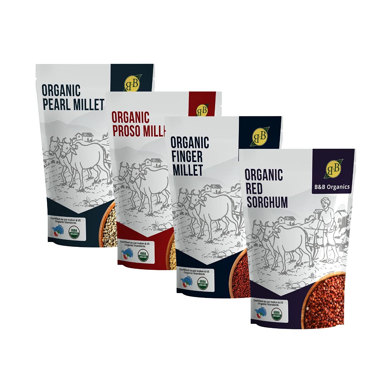 B&B Organics Millets Combo Pack (Proso Pearl Ragi Red Jowar) (Each 1 kg)