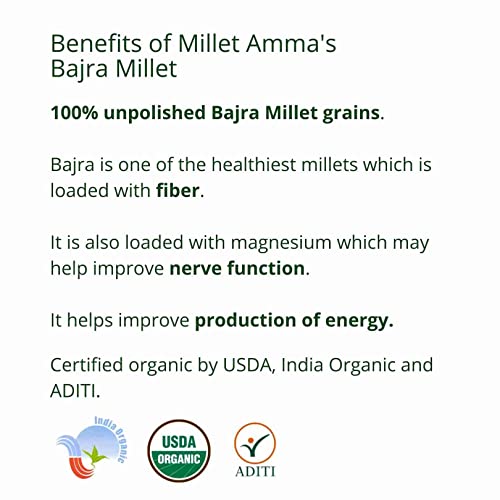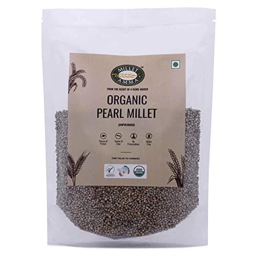 Millet Amma CERTIFIED ORGANIC Pearl Millet (Bajra) - 2 Kg (500g x 4 Packs) | Unpolished Millet Grains | (Kambu, Sajje, Sajja, Bajri, Kambam) | 100% Vegan & Gluten Free, Rich in Protein |