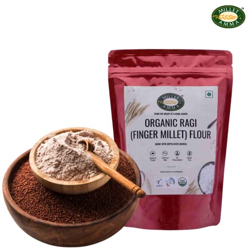 Millet Amma CERTIFIED ORGANIC Sprouted Ragi (Finger Millet) Flour - 500gm / 100% Vegan & Gluten Free