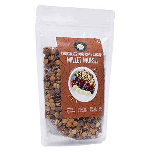Museli- A perfect nutritious and delicious breakfast cereal.But what if we give you chocolate flavor in that. That means now Museli is not only healthy but also tasty. MilletAmmahas introduce Chocolate Museli. Thus muesli is not only a healthy breakfast alternative but also a nutritious dessert. Muesli is a ready-to-eat cereal and a popular breakfast option consisting of rolled oats fresh and dried fruits seeds & nuts. The first meal of the day is the most important one it literally breaks your night-long fast and sets the tone for the rest of the day. So however your days may be paced breakfast just can't be missed. The beauty of having muesli to kick start your day is that you receive the goodness of carbs in the form of oats and protein in the form of nuts from a single bowl. Given our hectic pace of life we do not find the time to make something healthy in the kitchen. Muesli is a quick & easy-to-make snack with the right blend of nutrition and taste packed with healthy ingredients. Packaged muesli is a loose mixture of oats wheat flakes multi-grains topped with pieces of dried fruits nuts seeds etc. It may contain honey cinnamon quinoa coconut chocolate natural fruit and other delightful flavors. You can perhaps experiment with the meal timings and there is no set of fixed rules to decide the best time to eat muesli. It is a one-dish meal and an excellent breakfast alternative however you can eat muesli at lunch or dinner considering the balanced nutritional value. Rich in fiber and proteins Muesli keeps you full for a longer duration and boosts the energy levels.