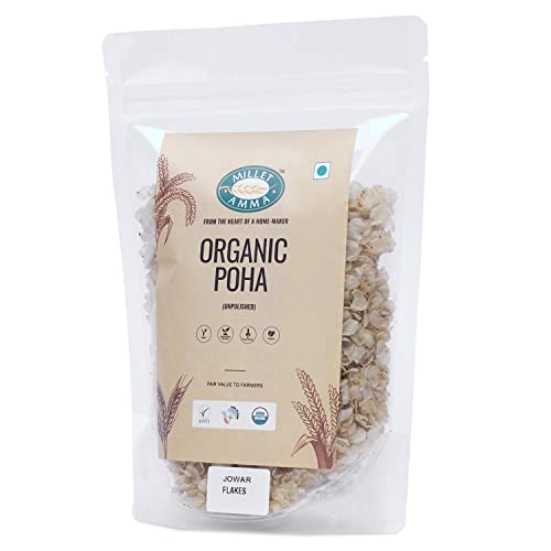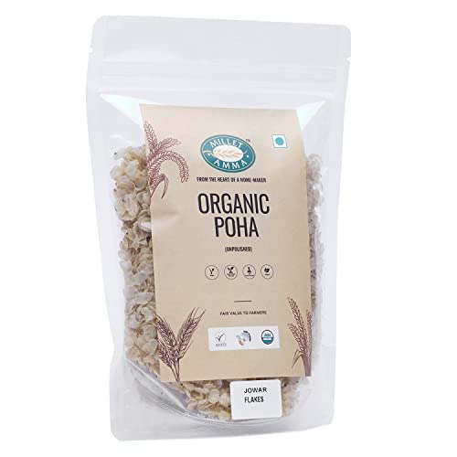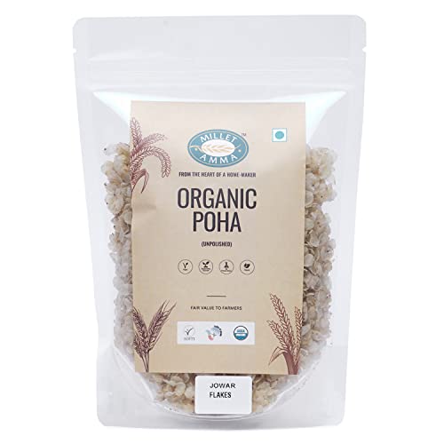 HomeGroceryCookingThe Millet StoreMillet Amma Organic Jowar Poha Flakes 1 Kg (2 Packs of 500gm) | Gluten Free | Best Choice for Making Poha and Health Snack Recipes | Millet Flakes for a Healthy and Nutritious Breakfast