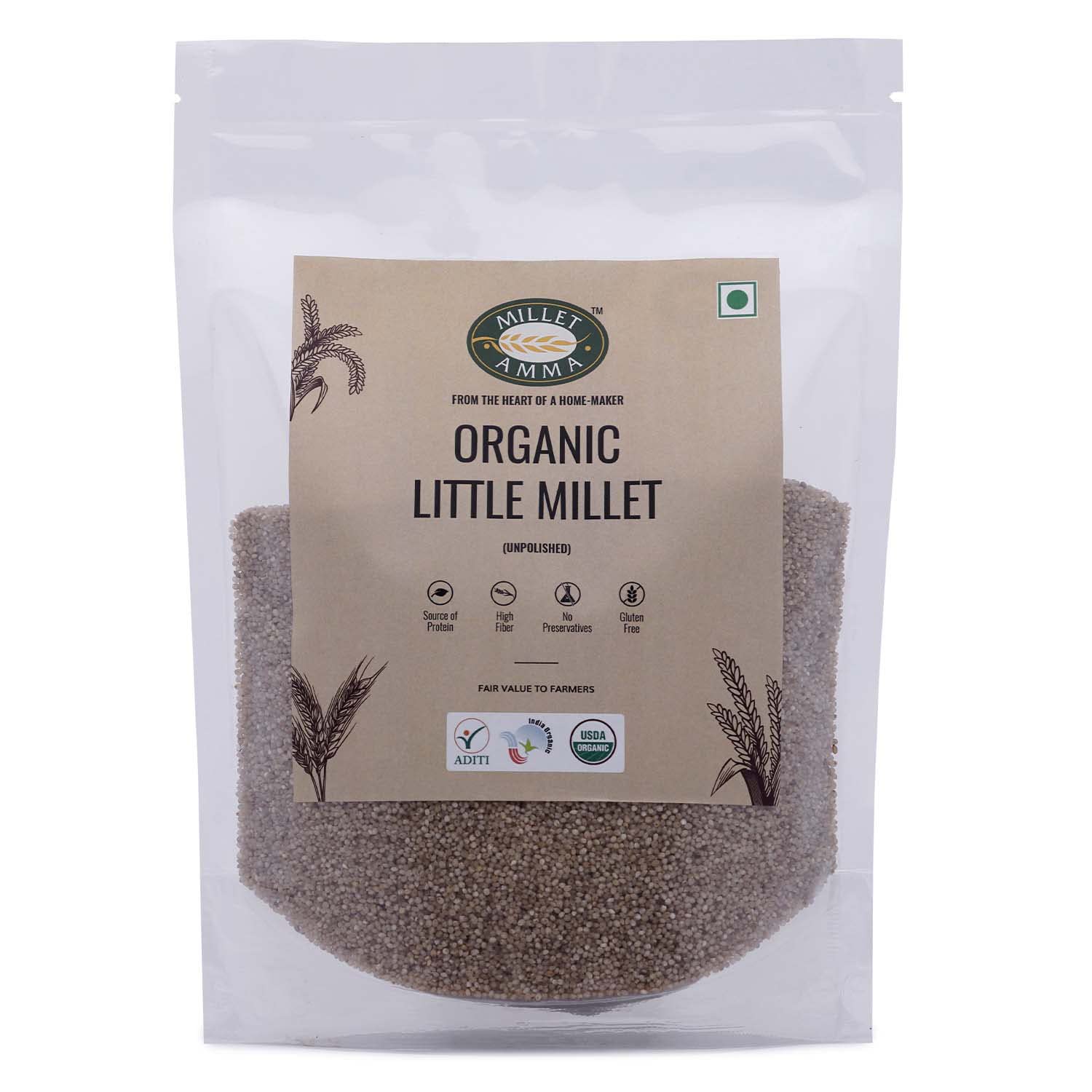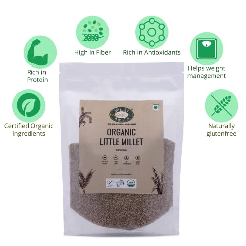 Millet Amma CERTIFIED ORGANIC Little Millet | 1 Kg (500g x 2 Packs) | Unpolished Millet Grains (Kutki | Samai | Same | Samalu) | Suitable for Multiple Millet Recipes | 100% Vegan & Gluten Free |