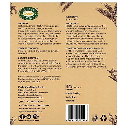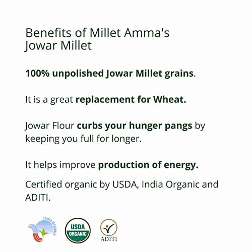 • Millet Amma's Organic Jowar(Sorghum) Millet Grains are a rich source of protein. Jowar is a great replacement for wheat.