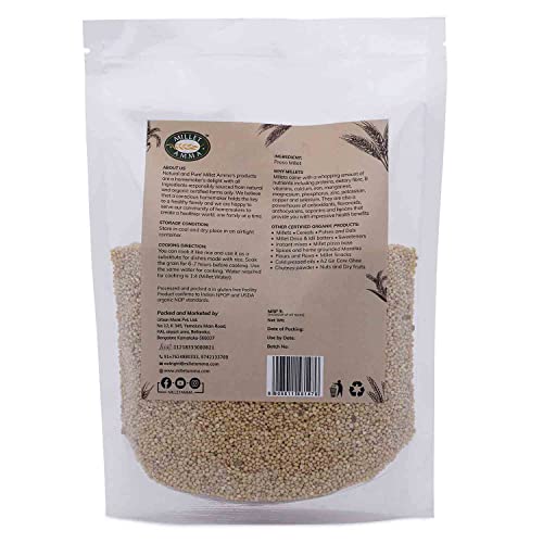 Millet Amma's Organic Proso Millet- Millet Amma's Organic Proso Millet contains high levels of lecithin. These unpolished Proso Millets are rich in B Complex vitamins and essential amino acids. Proso Millet has a low glycemic index and in controlling your levels. The millet cultivated is 100% Organic and is suitable for a diet. Enjoy your favourite dishes with this Organic Proso Millet with love from the of a home-maker. Unpolished Proso Millet How to store? Store your favourite Organic Proso Millet at a cool and dry place. It has a shelf life of 6 Months. Proso Millet is nutritious and tasty. It has an all around egg-formed prolific floret and its frame is hard and gleaming and solidly encases the seeds when it is shed. It comes in different tones from tanish dark through olive brown orange-red brilliant and light cream. The wheat of Proso millet contains fundamental supplements that are fundamental for a sound eating routine and is likewise a brilliant wellspring of fiber! It is without and has a lot of carbs protein niacin (Vitamin B3) and unsaturated fats. Aside from these supplements it itionally contains fundamental minerlike phosphorus manganese and magnesium. Aside from these it is likewise a rich wellspring of fundamental phosphorous. It likewise gives supplements for example iron zinc fiber and vitamin B6 which are fundamental for our everyday working. Might it be said that you are searching for a method for recovering your wellbeing the regular way? Then at that point you should give a shot our handpicked grouped item that is made for people who want a sound way of life.