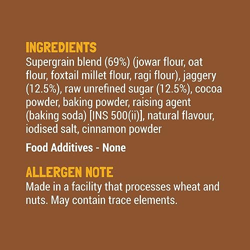 100% vegetarian. Filled with goodness of gluten free ragi foxtail millet and cocoa