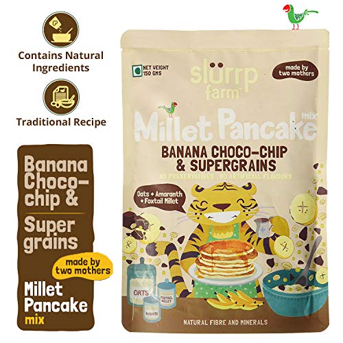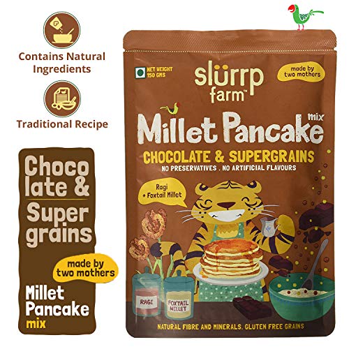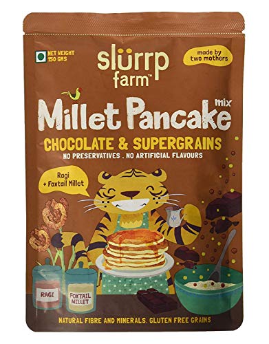 Slurrp Farm Millet Pancake Mix Chocolate and Supergrains 150g and Slurrp Farm Millet Pancake Mix Banana Choco-chip and Supergrains 150g