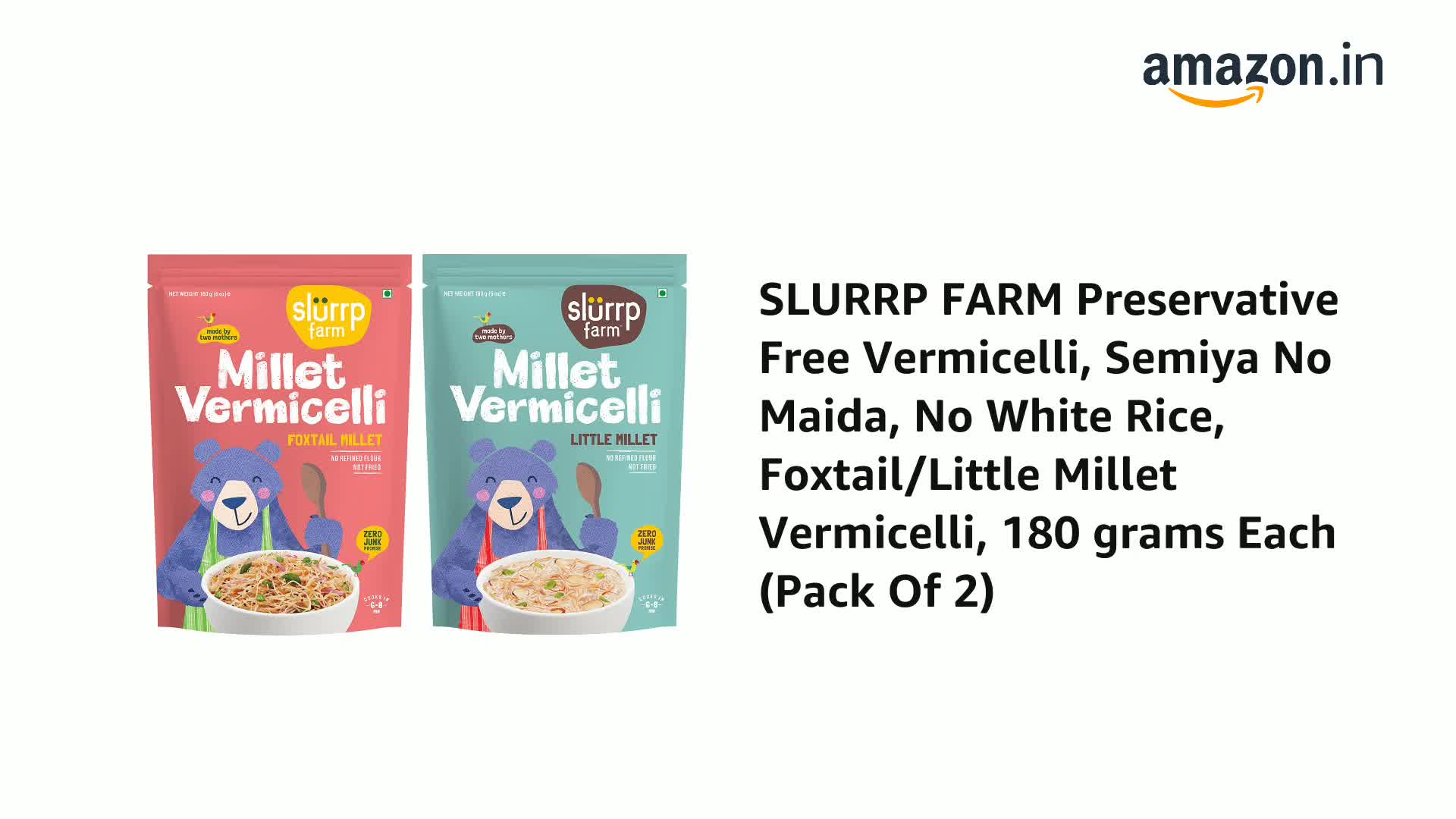HomeGroceryCookingThe Millet StoreSLURRP FARM Preservative Free Vermicelli, Semiya No Maida, No White Rice, Foxtail/Little Millet Vermicelli, 180 grams Each (Pack Of 2)