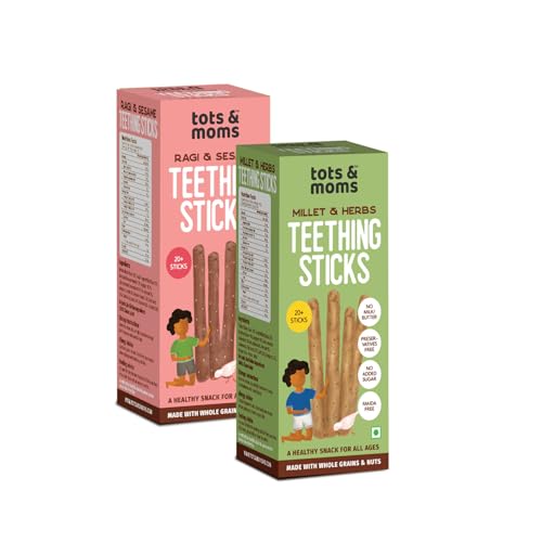 Tots and Moms Teething Sticks | Ragi & Sesame | Millet & Herbs | Pack of 2-150g Each