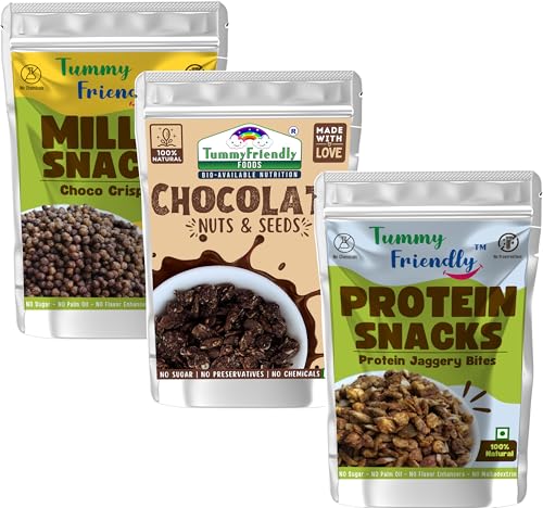 Tummy Friendly Millet Snacks for Kids Combo. Healthy Snacks for Kids, Toddlers, Adults. Travel friendly snacks for kids for school. Healthy Millet Snacks for Kids, adults. No Sugar, No Preservatives. Packs of 3, 70g Each (MS-ChocoCripsies-ProteinBites-Cho