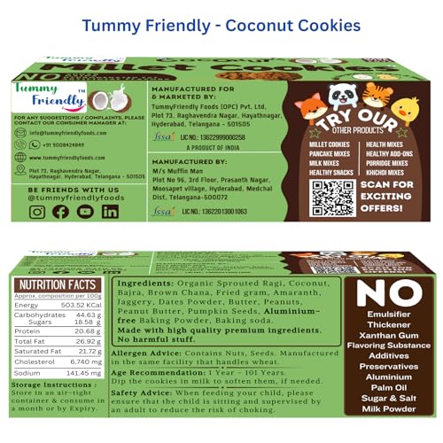 • Cookies for Babies 1 Year Old: Begin your little one's culinary adventure with our baby-friendly Millet Coconut Cookies. Thoughtfully crafted to provide both nutrition and deliciousness for the youngest members of your family. Perfect snacks for babies.