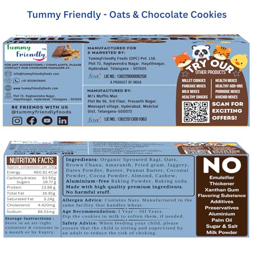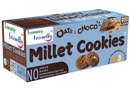 TummyFriendly Foods Oats Chocolate Millet cookies for Kids Adults. Millet Biscuits, Ragi, Jaggery. Healthy Snacks for kids Babies 1 Year Old. Gift Best Healthy Biscuits - Oats Cookies- 1x75g