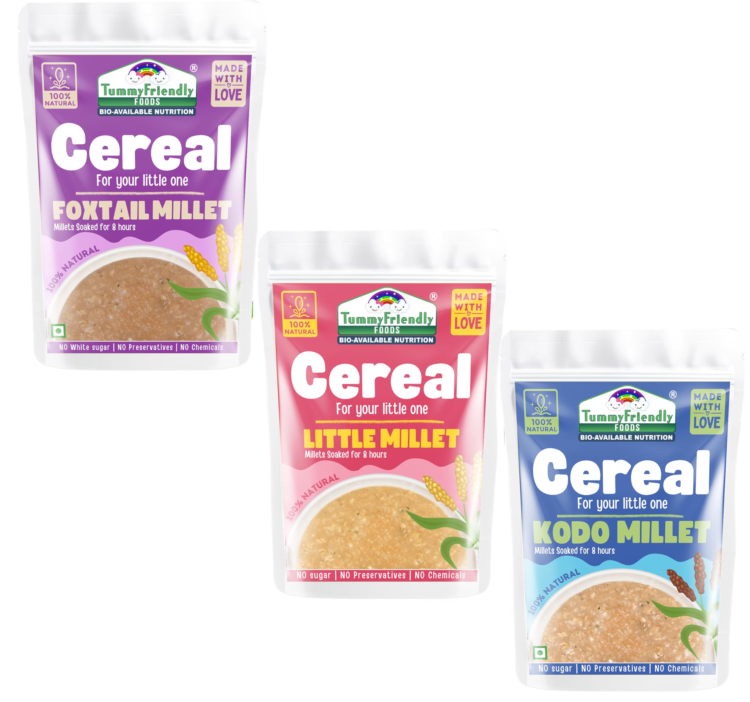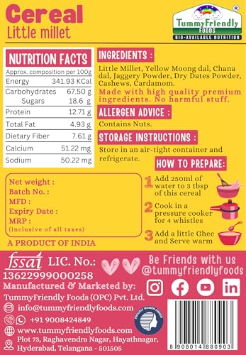 TummyFriendly Foods Foxtail Millet Little Millet & Kodo Cereal for baby Toddler kids 2 year old | Baby food for 2+ year old | Maximum Nutrition From Real Food. Available in Trial Baby Packs too. 300g (100g each). Introducing our Organic Multi Grain Health Mix Powder - the ultimate health drink for kids! Crafted with care and packed with goodness this nutritious blend is specially formulated to provide essential nutrients for growing children. Say goodbye to sugar worries! Our health drink for kids without sugar offers a healthy option for parents seeking wholesome alternatives. Made with natural ingredients it's a deliciously healthy choice that kids will love. Created with the well-being of children in mind our health mix for kids is homemade with love. We understand the importance of nourishing your little ones with the best which is why our blend is free from artificial additives and preservatives. Suitable for ages 2-6 years our health mix for kids malt is designed to support their growth and development. With a rich combination of grains it's a powerhouse of nutrients that helps fuel their active lifestyles. Looking for a Healthy Milk Mix powder for kids? Look no further! Our Health mix for kids is the perfect solution. Packed with vitamins and minerals it's an easy and convenient way to ensure your child gets their daily dose of goodness. Make the switch to our Organic Multi Grain Health Mix Powder today and give your kids the gift of health and vitality. With every sip they'll be nourished energized and ready to take on the world!