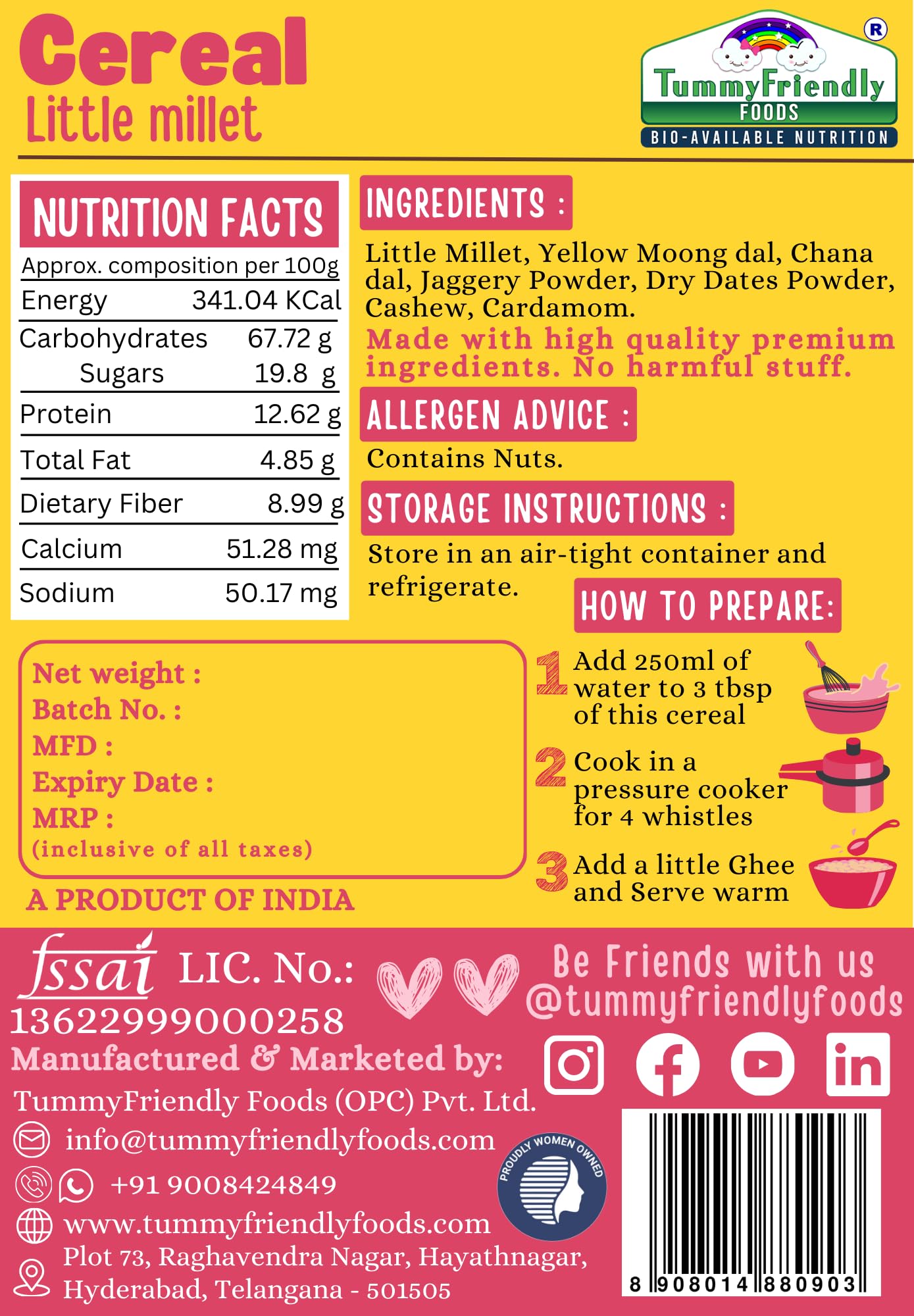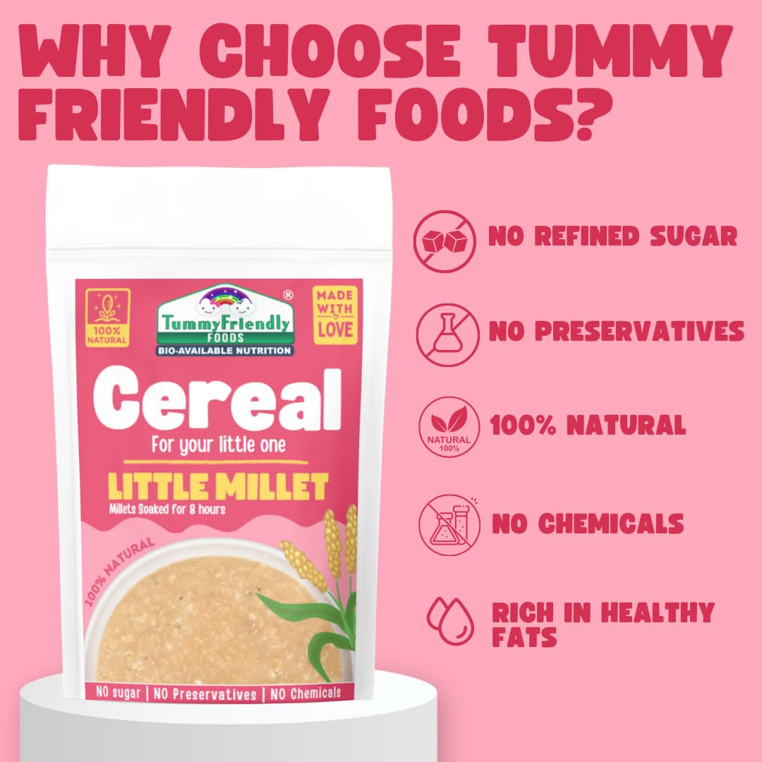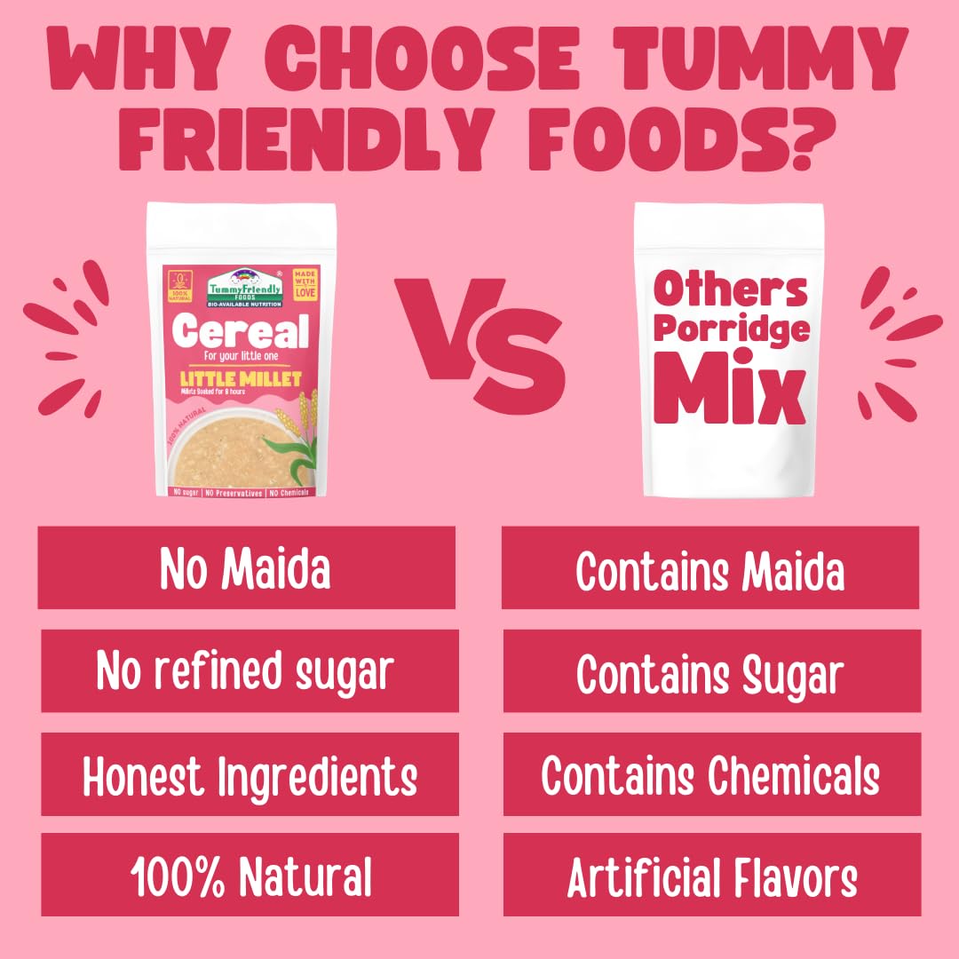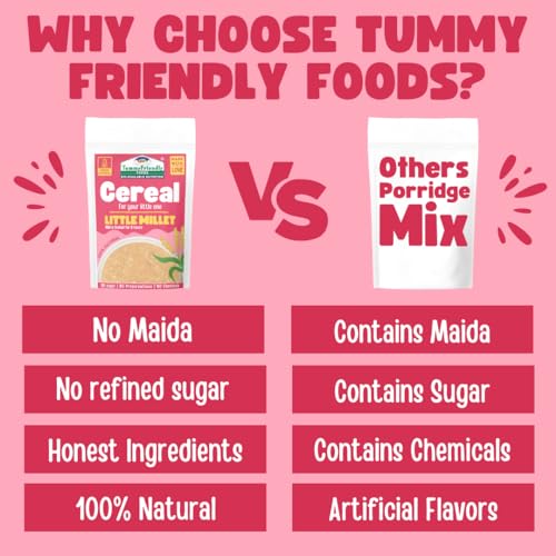 TummyFriendly Foods Little Millet Cereal For 2 year old baby toddler - 400g 100. Introducing our Organic Multi Grain Health Mix Powder - the ultimate health drink for kids! Crafted with care and packed with goodness this nutritious blend is specially formulated to provide essential nutrients for growing children. Say goodbye to sugar worries! Our health drink for kids without sugar offers a healthy option for parents seeking wholesome alternatives. Made with natural ingredients it's a deliciously healthy choice that kids will love. Created with the well-being of children in mind our health mix for kids is homemade with love. We understand the importance of nourishing your little ones with the best which is why our blend is free from artificial additives and preservatives. Suitable for ages 2-6 years our health mix for kids malt is designed to support their growth and development. With a rich combination of grains it's a powerhouse of nutrients that helps fuel their active lifestyles. Looking for a Healthy Milk Mix powder for kids? Look no further! Our Health mix for kids is the perfect solution. Packed with vitamins and minerals it's an easy and convenient way to ensure your child gets their daily dose of goodness. Make the switch to our Organic Multi Grain Health Mix Powder today and give your kids the gift of health and vitality. With every sip they'll be nourished energized and ready to take on the world!