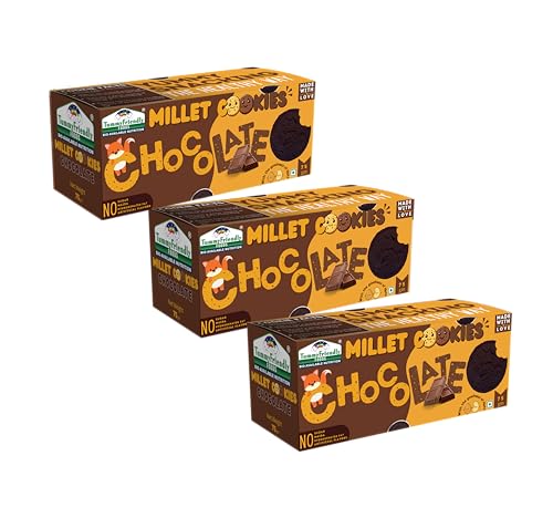 Millet Cookies Pack of 3 - 75 grams each. Chocolate Millet Cookies . Indulge in the perfect fusion of wholesome goodness and tropical delight with our Millet Chocolate Cookies. Crafted with care these cookies cater to a variety of dietary preferences making them an ideal choice for everyone from toddlers to adults. Elevate your snacking routine with our Millet Chocolate Cookies â a harmonious blend of millet and chocolate that not only satisfies your cravings but also supports your health goals. Choose a snack that delights your taste buds and nourishes your body.