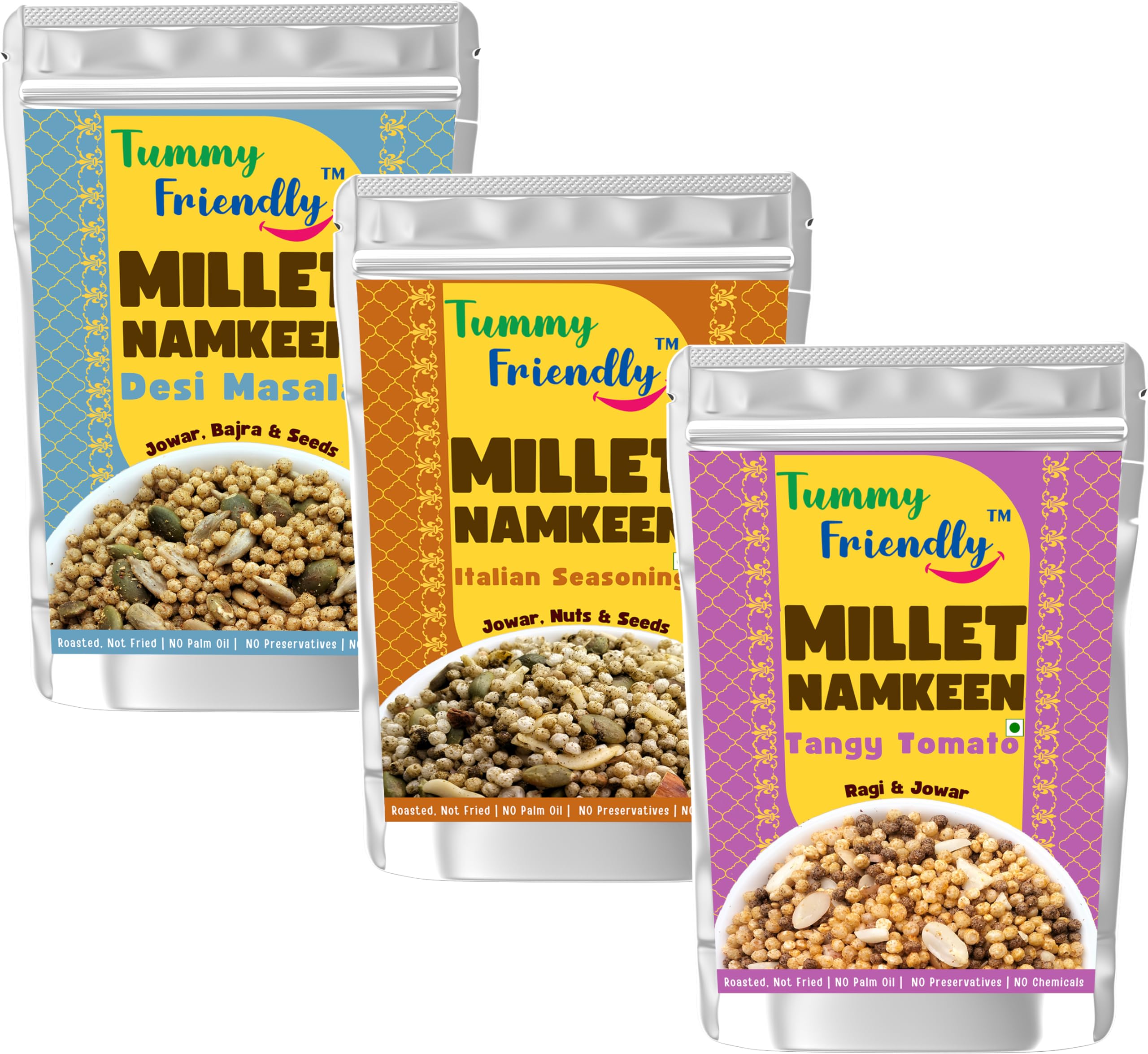 Introducing Healthy Millet Snacks â the perfect combination of taste and nutrition crafted for all ages! Made from 100% roasted millet our snacks are a wholesome alternative to traditional chips and namkeen. Whether you're looking for millet snacks for kids healthy options for adults or a snacks combo pack for the whole family these delicious bites are ideal for everyone. No Chemicals No Preservatives. Key Features: Healthy snacks for kids & adults packed with fiber and nutrients. Ready-to-eat millet snacks for busy days tea-time or as a light meal. A guilt-free crunchy chips replacement for health-conscious individuals. Suitable as snacks for diabetic patients pregnant women or those on a weight-loss journey. Available in snacks combo packs and as a thoughtful snacks gift. Versatile options like millet namkeen and millet snacks healthy to suit every occasion. Upgrade your snacking habits with our millet snacks healthy range â a delightful nutritious treat for all!