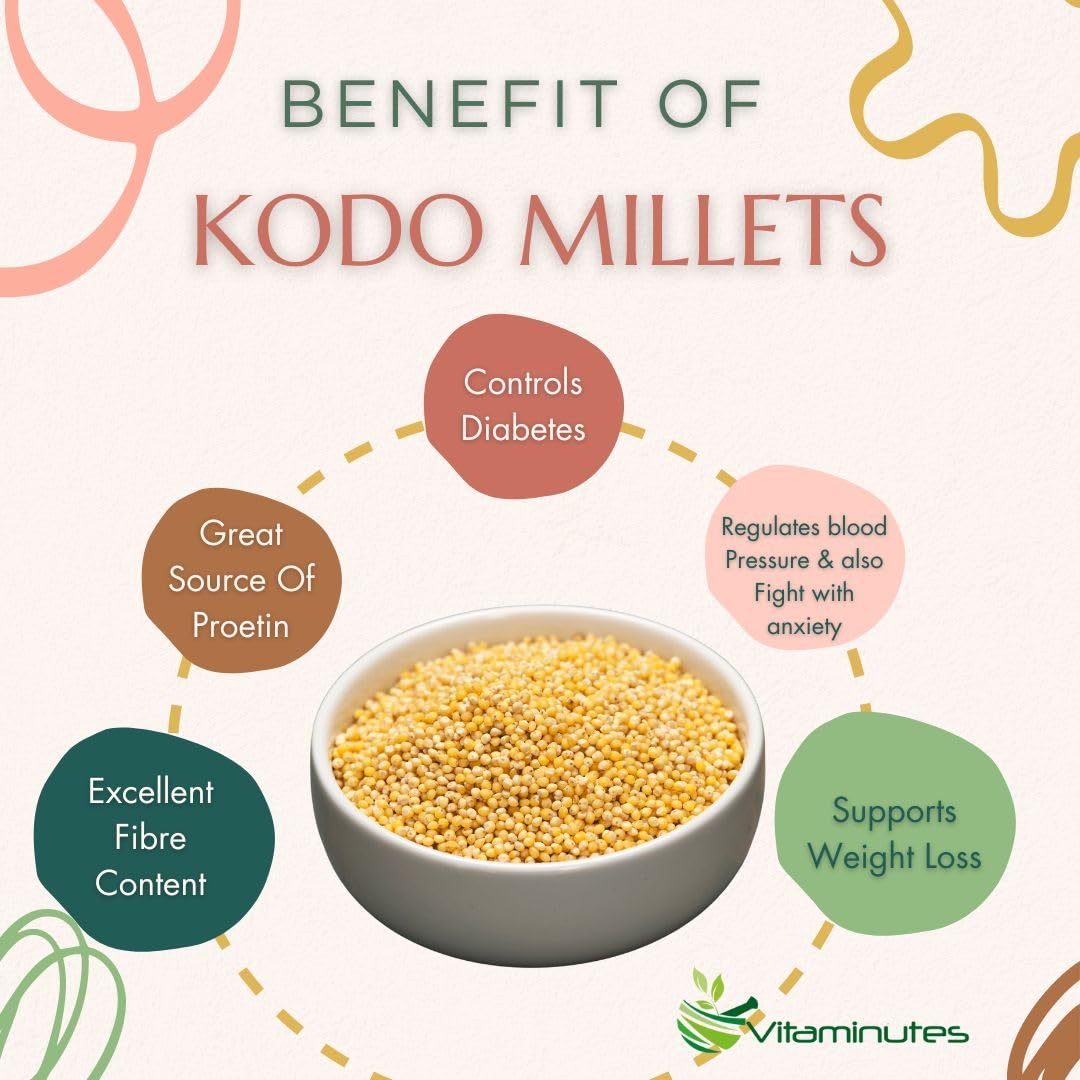VITAMINUTES Natural Kodo Millet | 100% Natural & Gluten Free | Kodri Seeds | Unpolished High Fiber KODO Millets | Wholegrain | 1 Kg