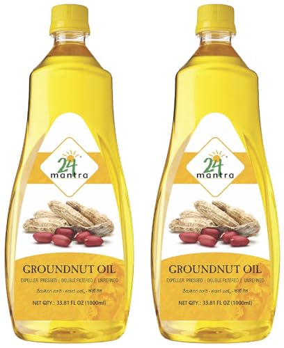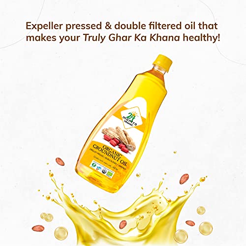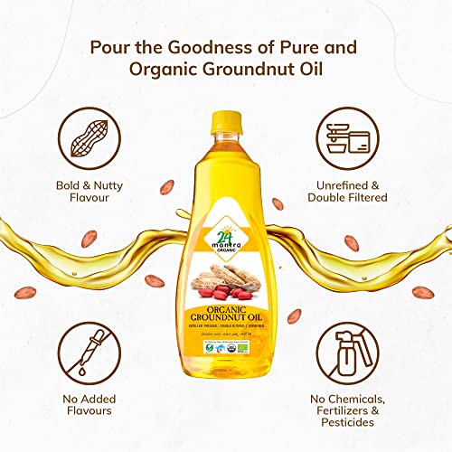 24 Mantra Organic Unrefined Groundnut Oil/Moongphali ka Tel- 1 L | Pack of 2 | 100% Organic | Chemical Free & Pesticides Free | Double Filtered | Expeller-Pressed