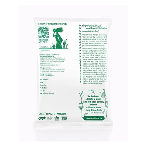 Adrish Zerowaste Organic Almonds Mamra (500g) - Special Mamra Badam Giri | Grade A ++ Nuts | Contains Natural Oils | Good Source of Vitamins, Magnesium & Protein | Crunchy | Non GMO | From Kashmir Valleys - Mamra Badam
