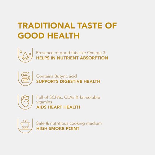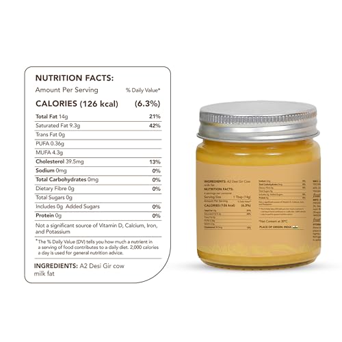 BILONA-CHURNED GHEE: Our A2 Desi Gir Cow Ghee is made from the A2 milk of grass-fed Gir cows of Gujarat. Our ghee is made in small batches ensuring the most natural ghee with no compromise on quality. The indigenous cow gives around 2-3 litres of milk per