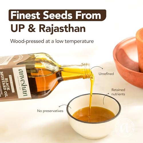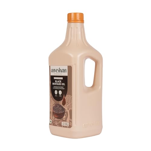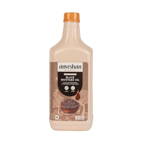 Anveshan Empowering farmers with technology Anveshan Wood Pressed Black Mustard Oil - 2 Litre | Tin Can | Kolhu/ Kacchi Ghani/ Chekku | Natural | Chemical-Free | Cold Pressed Mustard Oil for Cooking